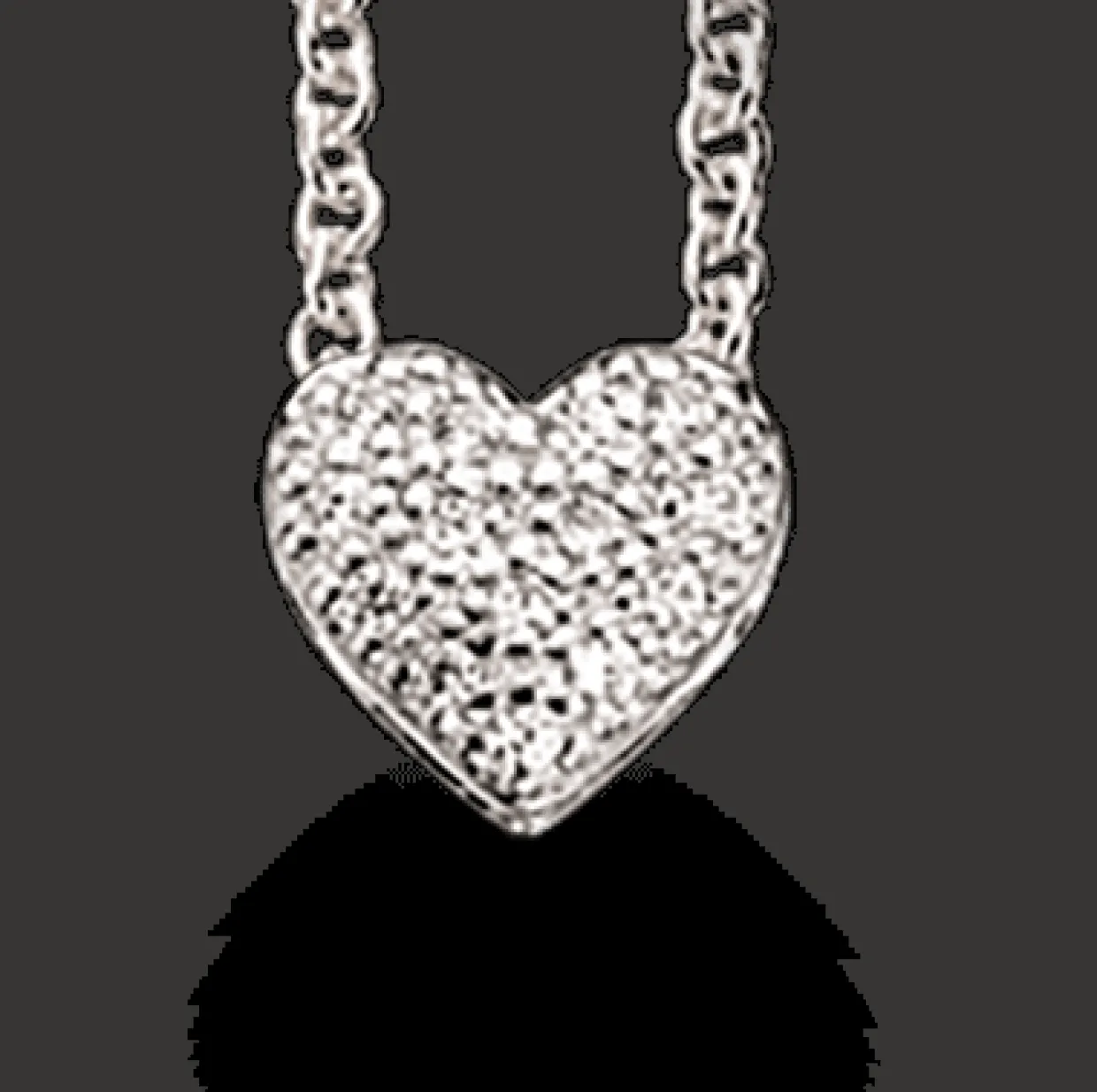 Dette søde vedhæng er fremstillet i sterling sølv og hænger på en sølv kæde som måler 45 cm. Vedhænger er formet som et hjerte og besat mes kubiske zirkonia i pavé.