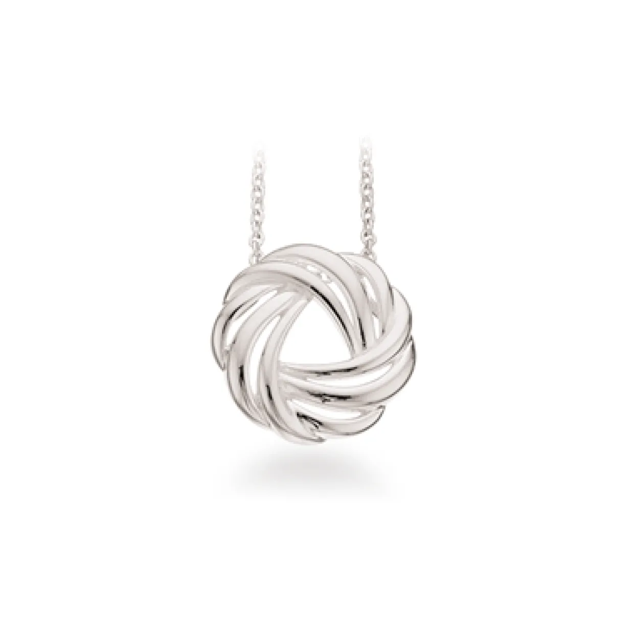 Dette fine vedhæng er fremstillet i sterling sølv og er blankt i overfladen. Vedhænget er designet som en cirkel der er formet som en knude. Til vedhænget følger en sølv kæde.
