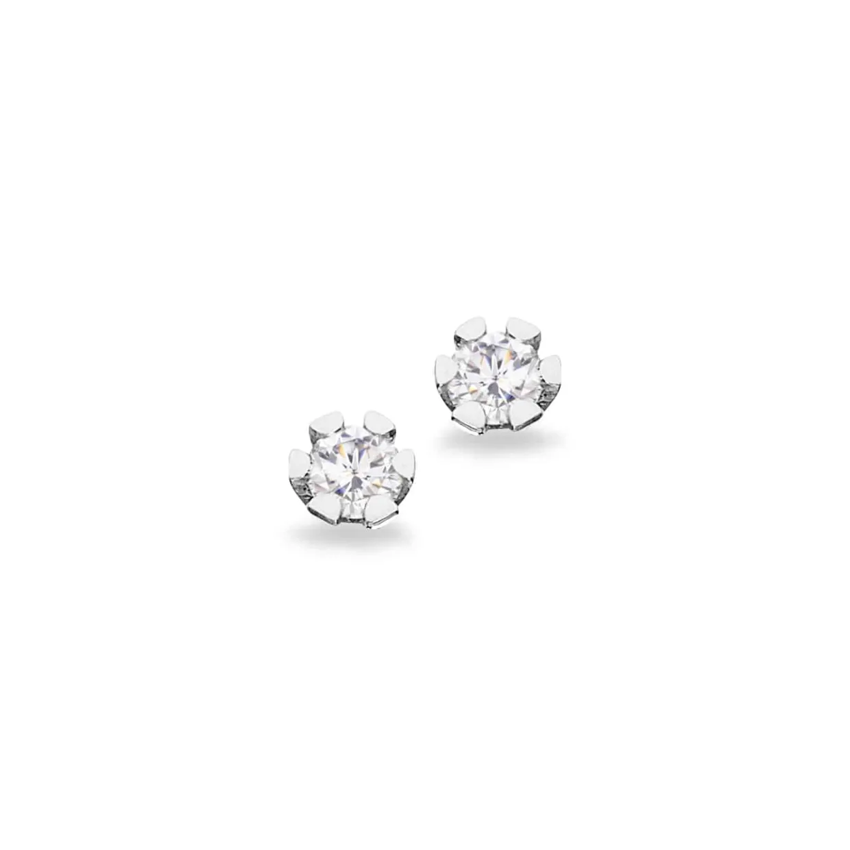 8 karat guld øreringe med brillant på i alt 0,10 carat i kvaliteten wesselton/p1. Øreringene er fra serien VIDA og de laves også i guld. Til serien er der tilknyttet en ombytningsret, så at man inden for to år kan ombytte dem til minimum nummeret større.