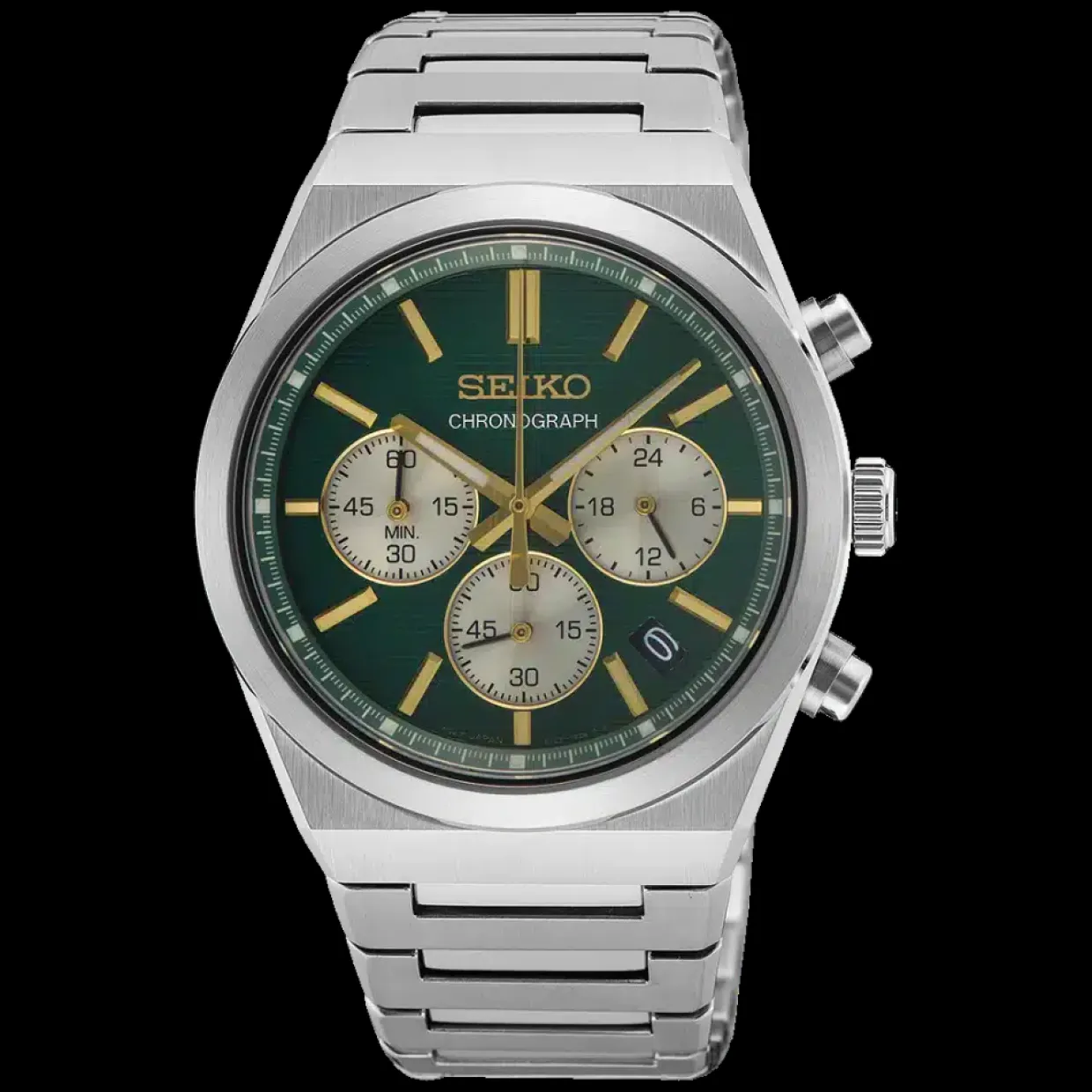 SEIKO UR HR CHRONOGRAF GØRN SKIVE MED LÆNKE – SSB461P1