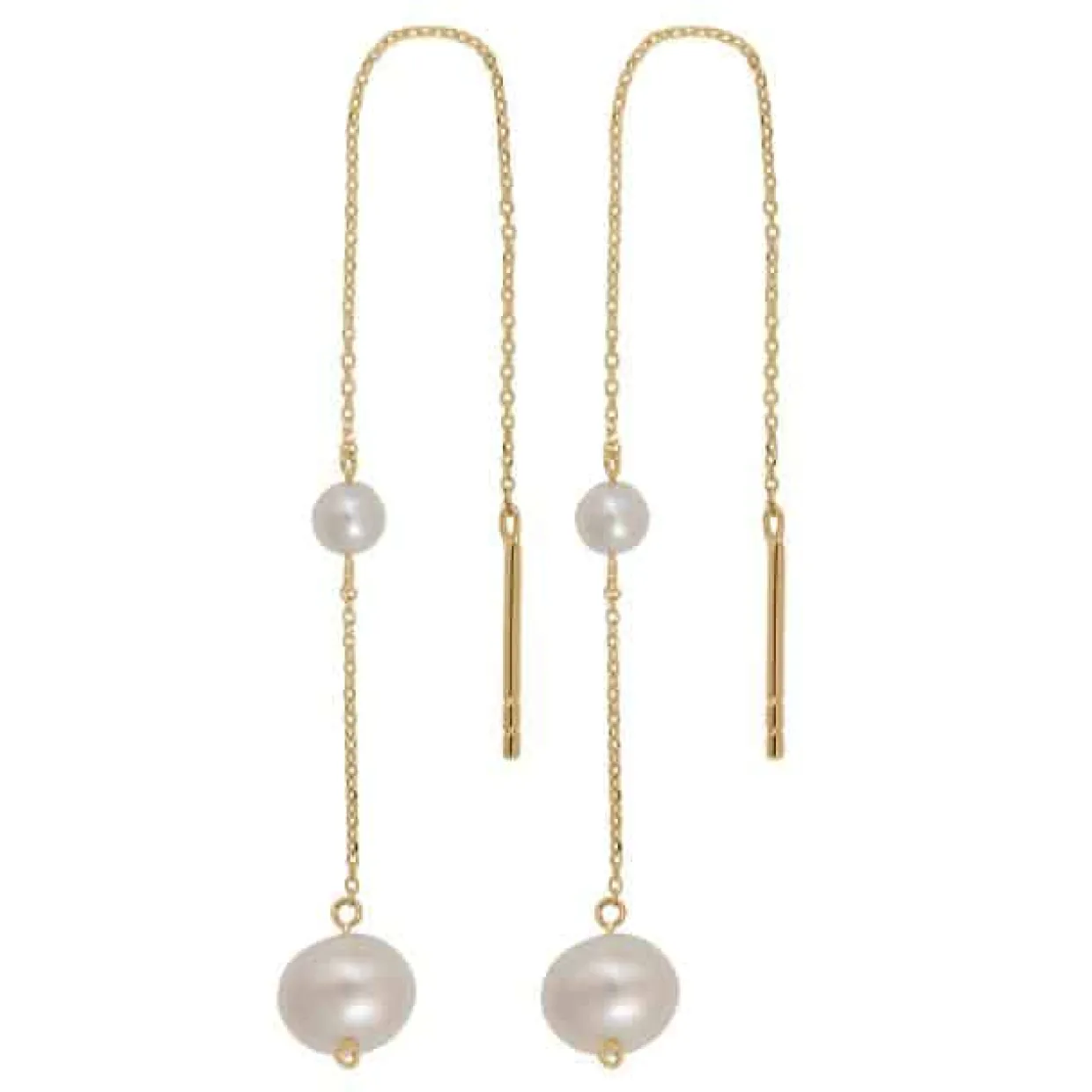 Flotte 8 karats guld øreringe med ferskvandsperler på kæde, kæden trækkes igennem øret så man kan placere den som man vil.