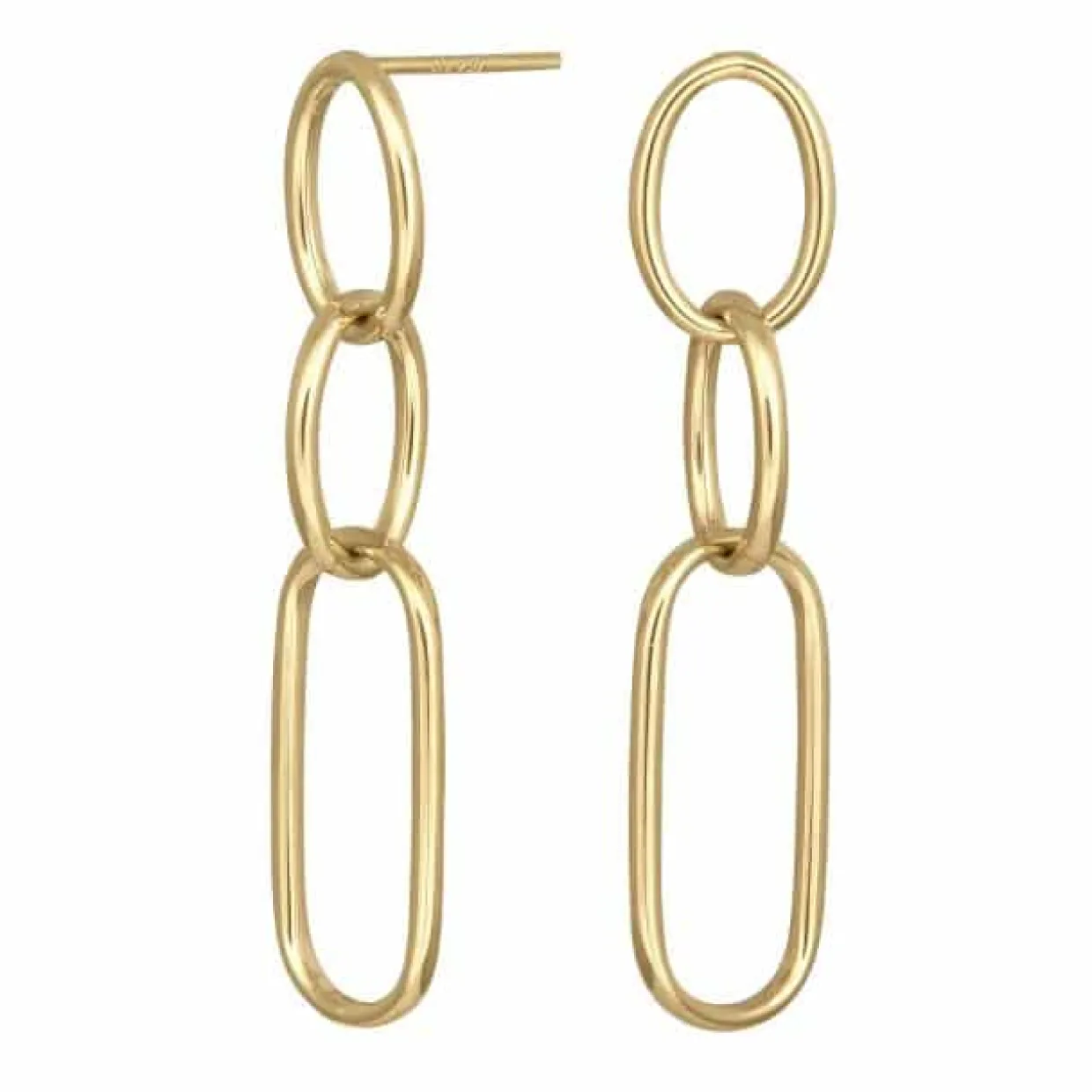Flotte øreringe lavet i 8 karats guld, designet med tre åbne ringe sat sammen. Øreringene måler 11 mm i bredden og 40 mm i højden.