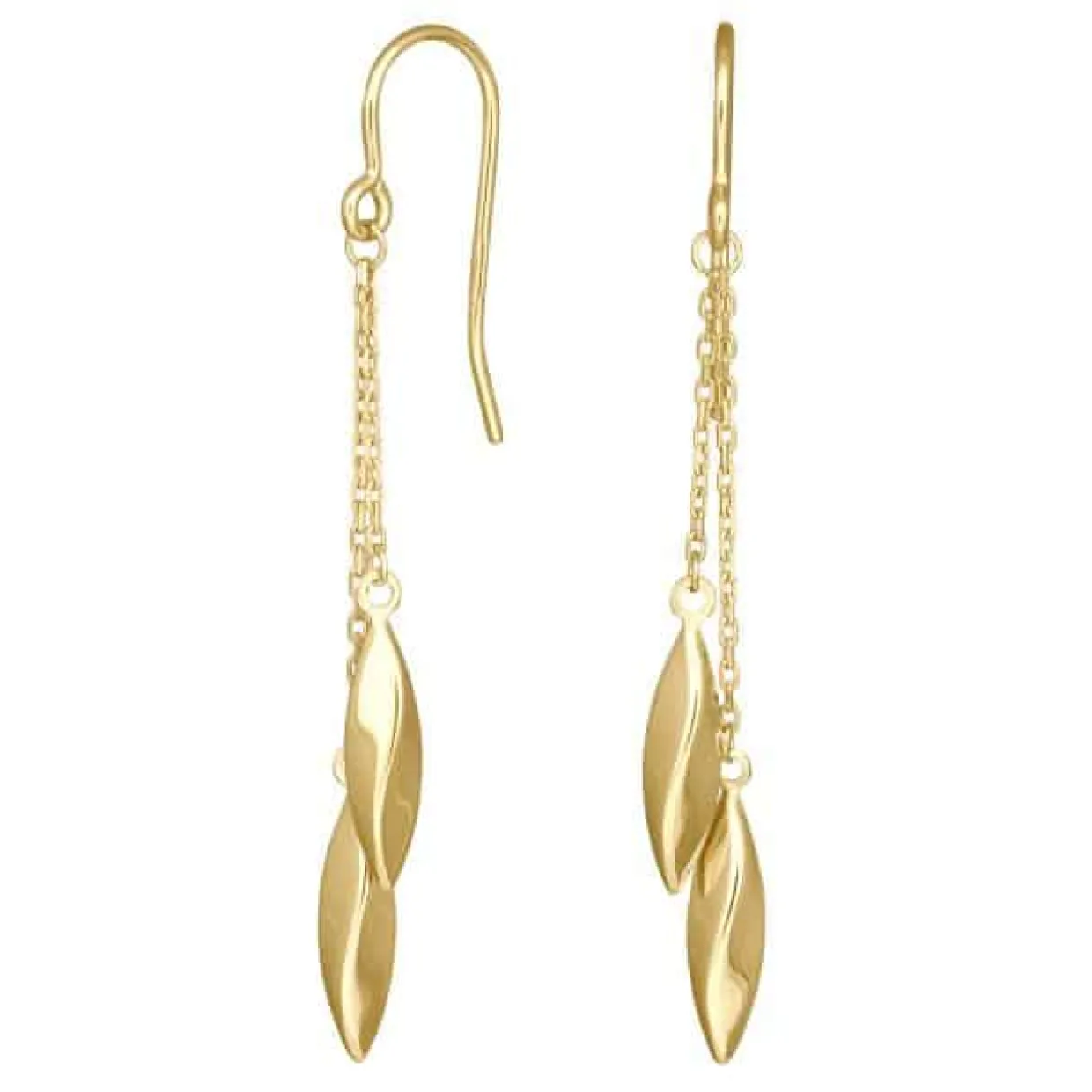 Flotte øreringe i 8kt guld der har blade nederst på øreringen, der giver et flot og yndefuldt udtryk. Disse øreringe appellerer til at være et statement smykke.