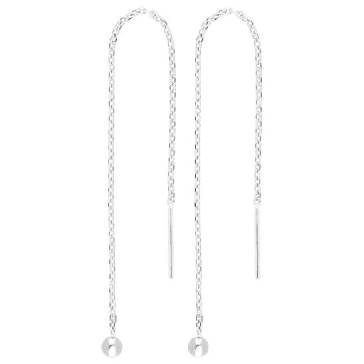Disse smart øreringe er fremstillet i rhodineret sølv. Øreringen er formet som en lang kæde med en lille sølv kugle i den ene ende.