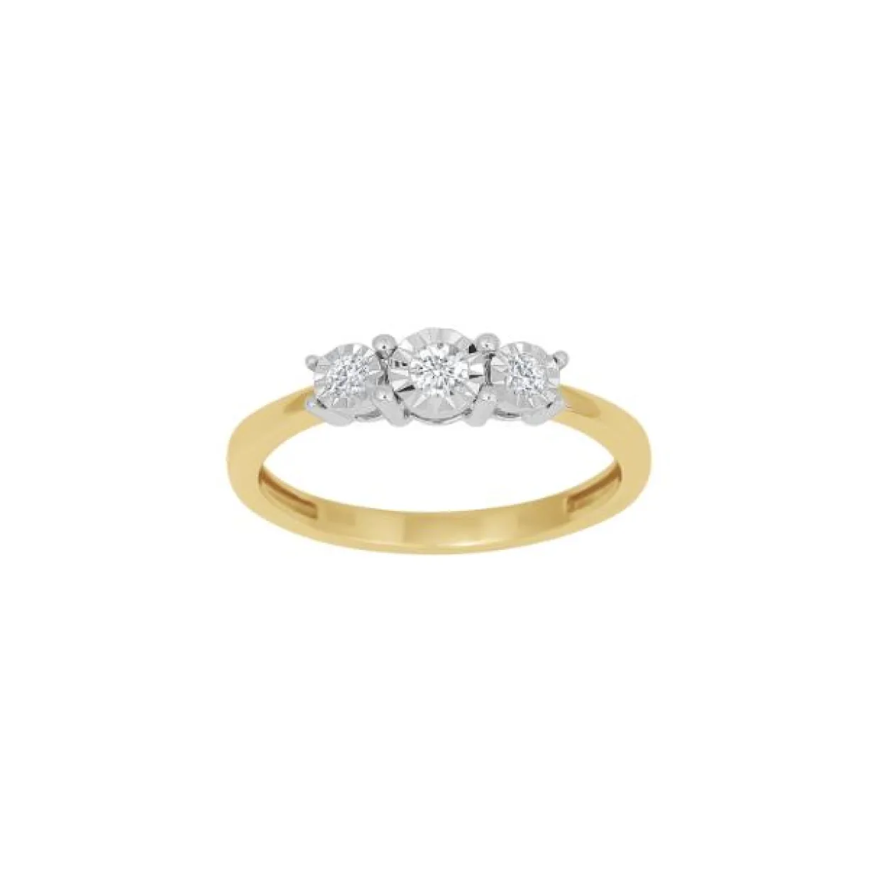 14 karat guld ring med brillanter på i alt 0,16 carat i kvaliteten wesselton/si. De tre brillanter sidder i 14 karat hvidgulds fatninger og det gør at brillanter skinner fantastisk meget. Ringen måler 3,9 mm i højden på det højeste punkt.