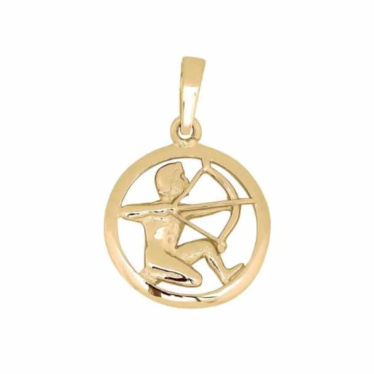 Vedhænget er fremstillet i forgyldt sterling sølv og er blankt i overfladen. Vedhænget måler 15×15 mm og forestiller skyttens tegn.