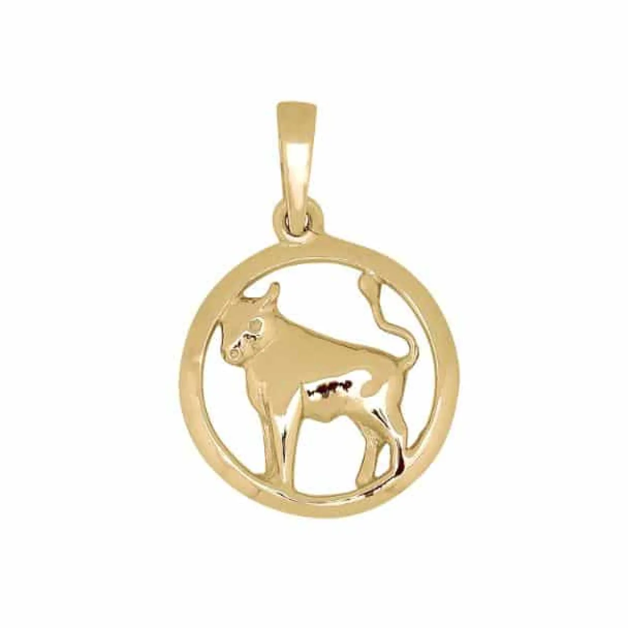 Vedhænget er lavet i forgyldt sølv og måler 15 mm i diamater. Vedhænget forestiller en tyr.