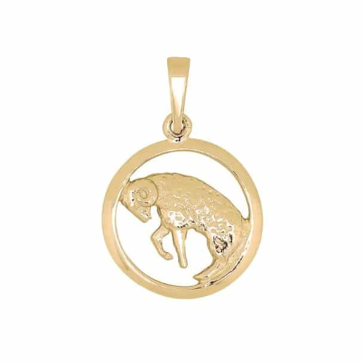 Vedhænget er fremstillet i guldbelagt sterling sølv. Vedhænget er en åben cirkel på 15 mm med en vædder i cirklen.