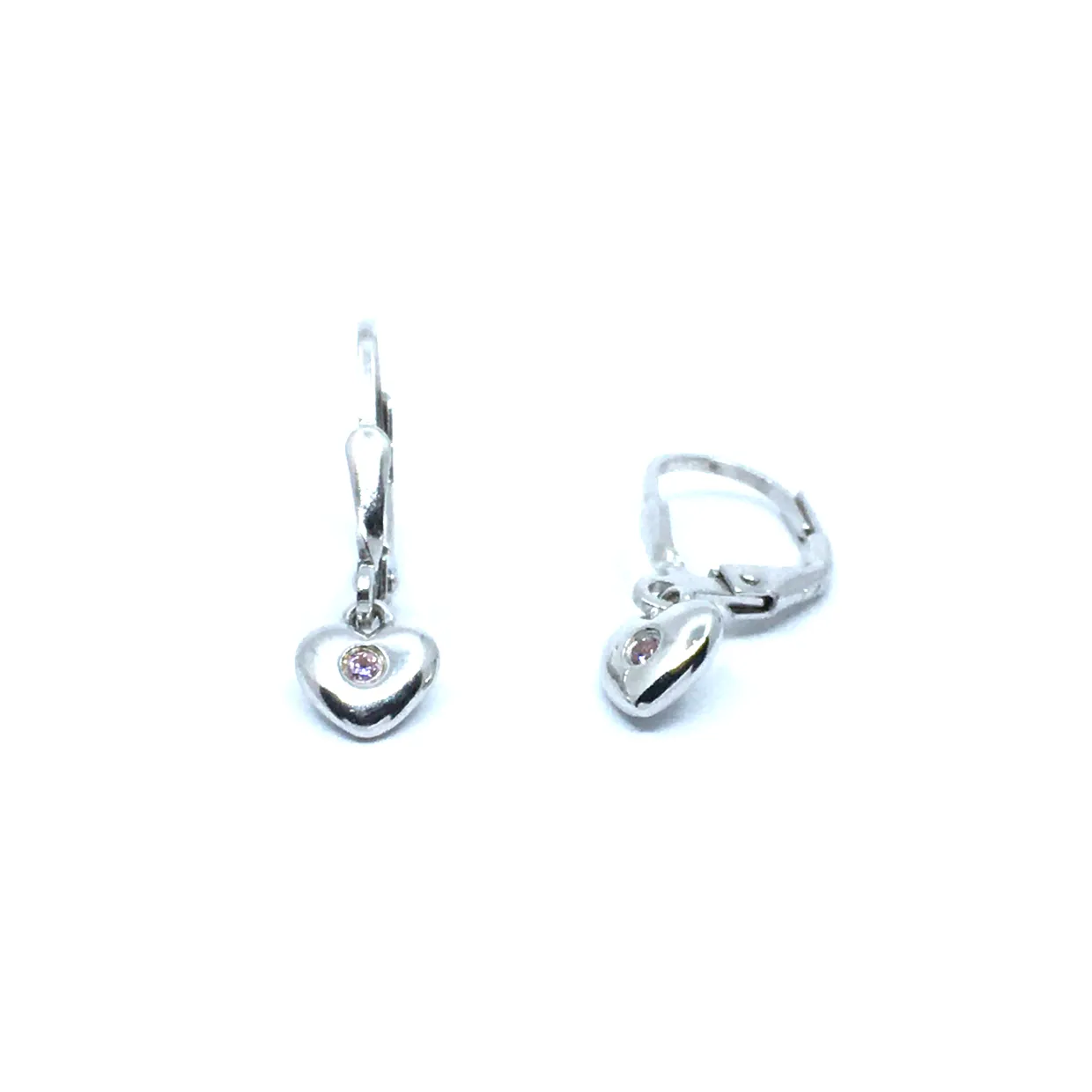 SØLV ØRERINGE HÆNGER BØJLE LUK HJERTE MED PINK SYNTETISK ZIRKONIA