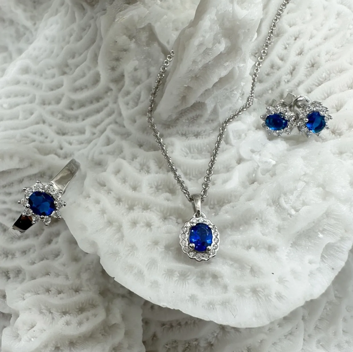 SØLV ØRERINGE STIK ROSET MED SYNTETISK SAFIR OG ZIRKONIA