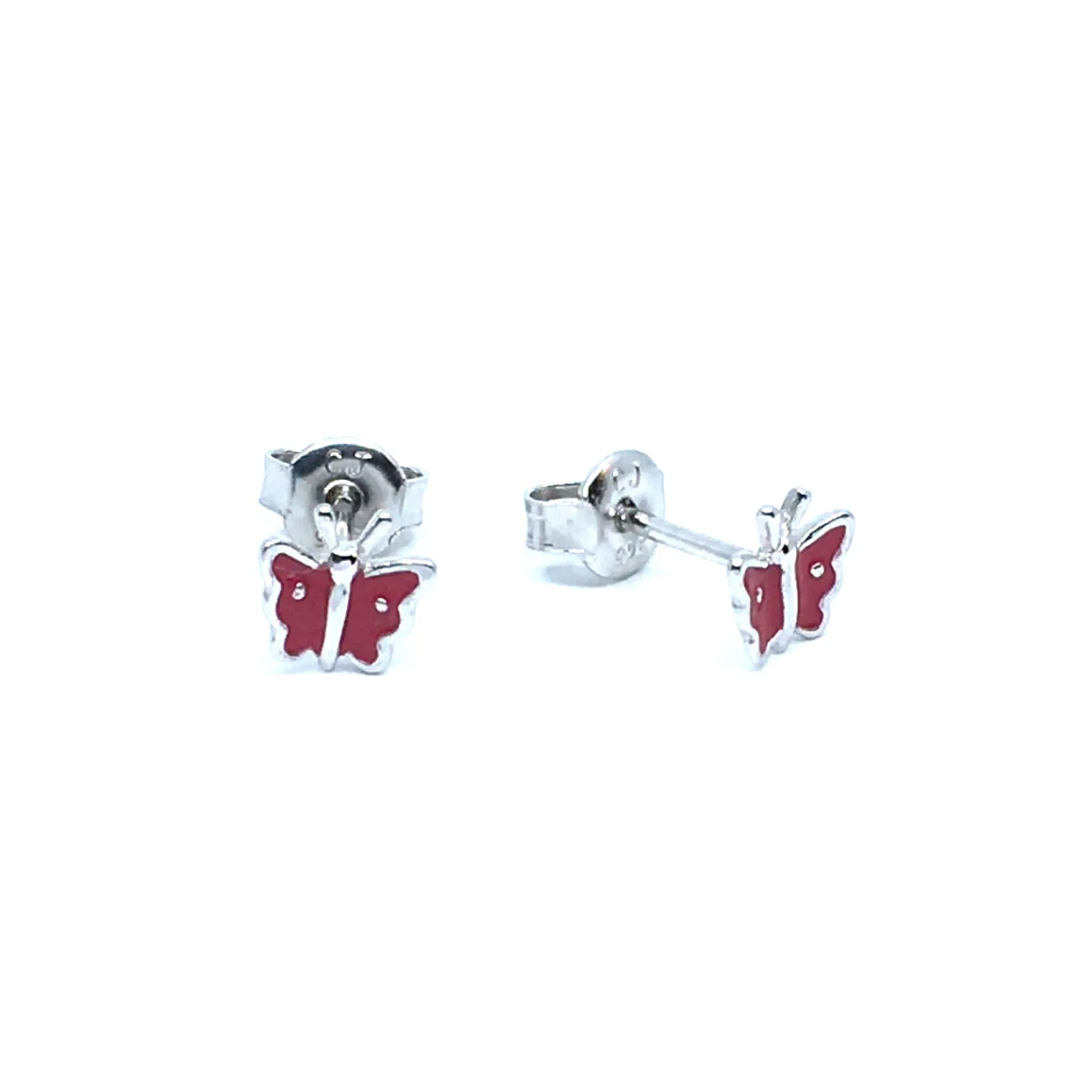 SØLV ØRERINGE STIK SOMMERFUGL MED LYSERØD EMALJE