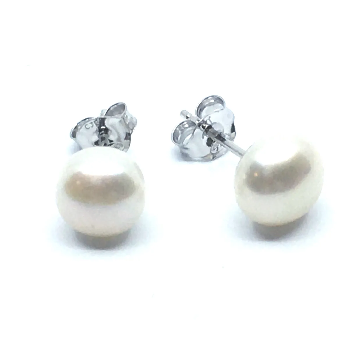 SØLV ØRESTIK RHODINERET MED HVID KNAP FERSKVANDSPERLE 8 MM