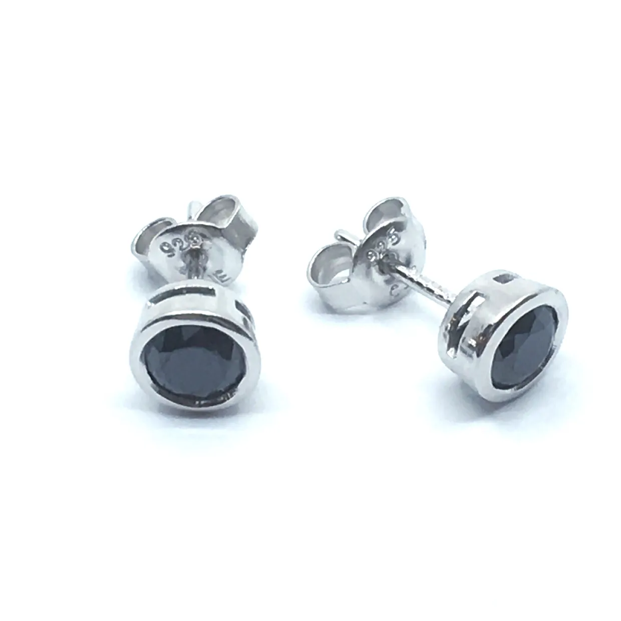 SØLV ØRESTIK RHODINERET MED SORT SYNT. ZIRKONIA 5 MM