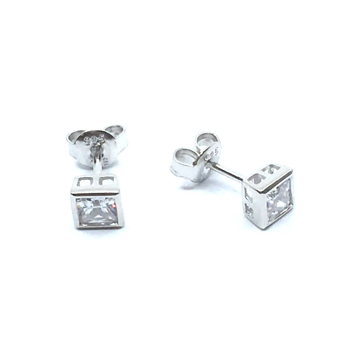 SØLV ØRESTIK RHODINERET MED SYNT. KLAR FIRKANTET ZIRKONIA 4 MM