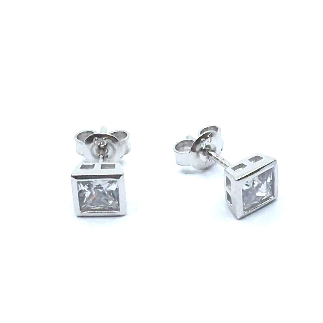 SØLV ØRESTIK RHODINERET MED SYNT. KLAR FIRKANTET ZIRKONIA 5 MM