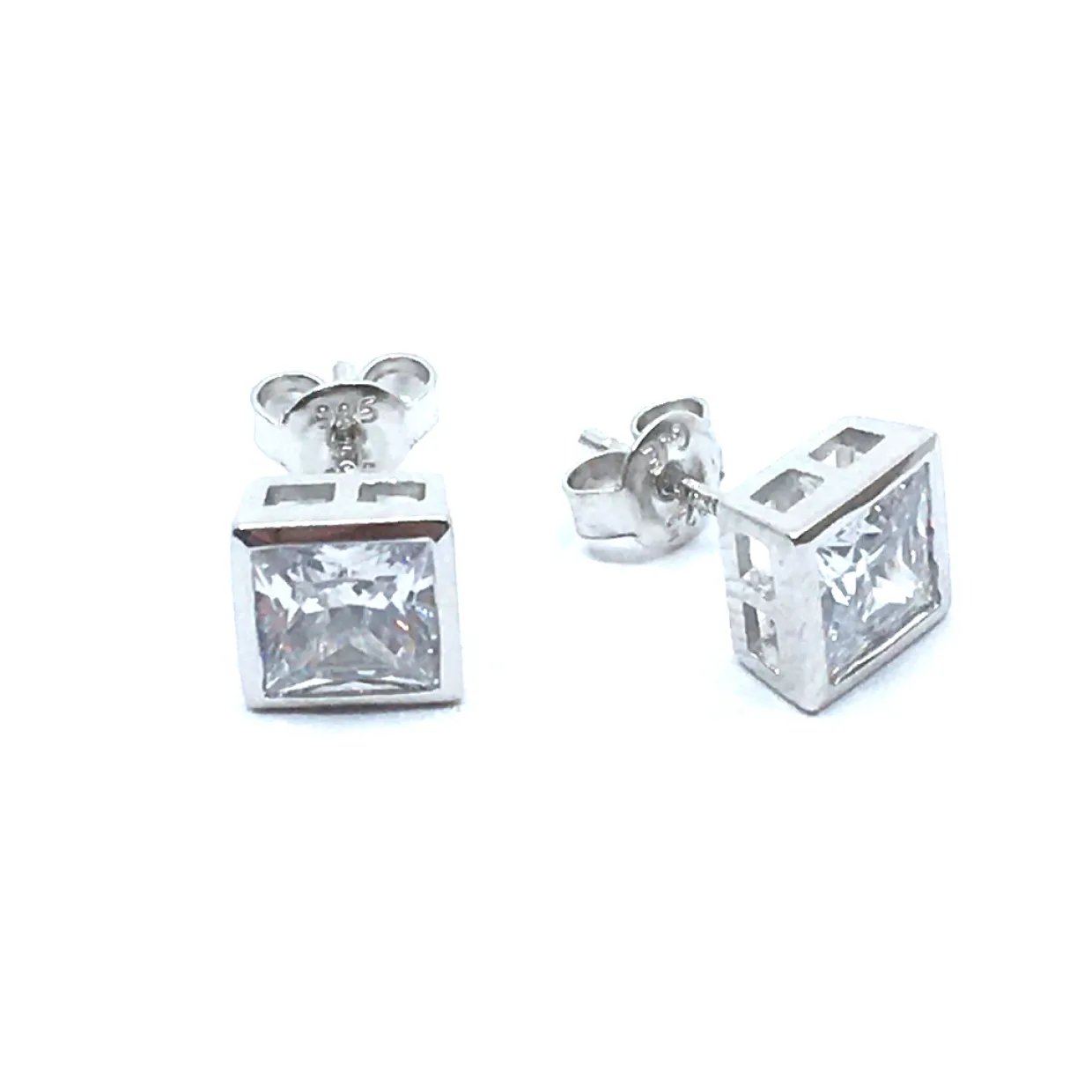 SØLV ØRESTIK RHODINERET MED SYNT. KLAR FIRKANTET ZIRKONIA 8 MM