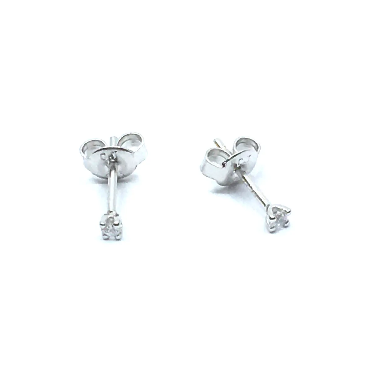 SØLV ØRESTIK RHODINERET MED SYNT. KLAR ZIRKONIA 2 MM 4 GRAPPET FATNING