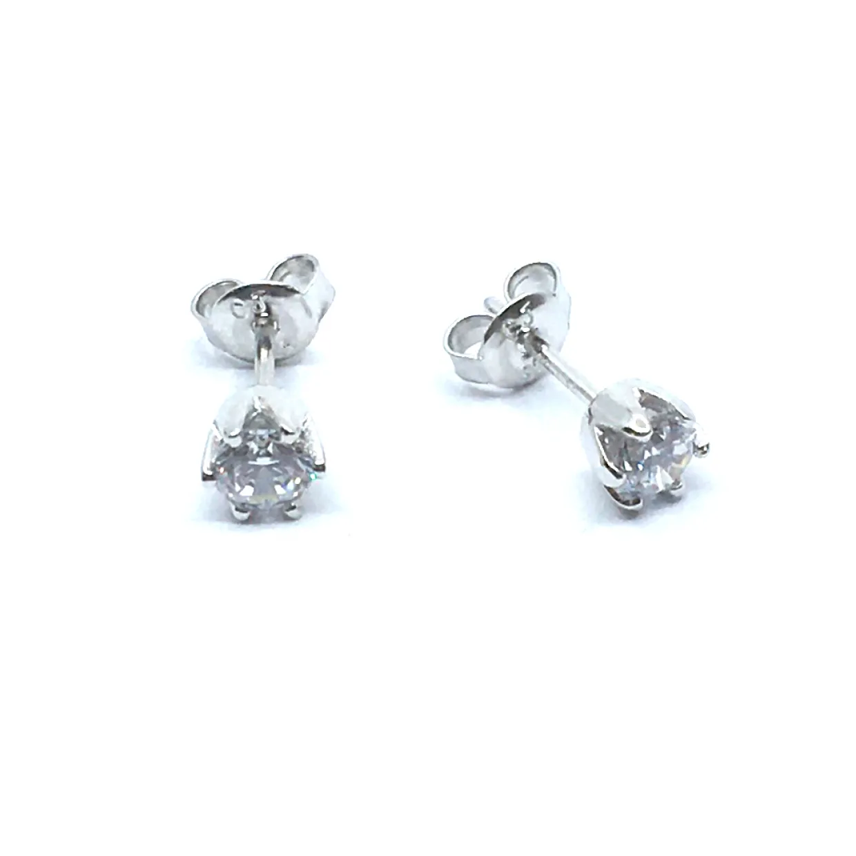 SØLV ØRESTIK RHODINERET MED SYNT. KLAR ZIRKONIA 5 MM 6 GRAPPET FATNING
