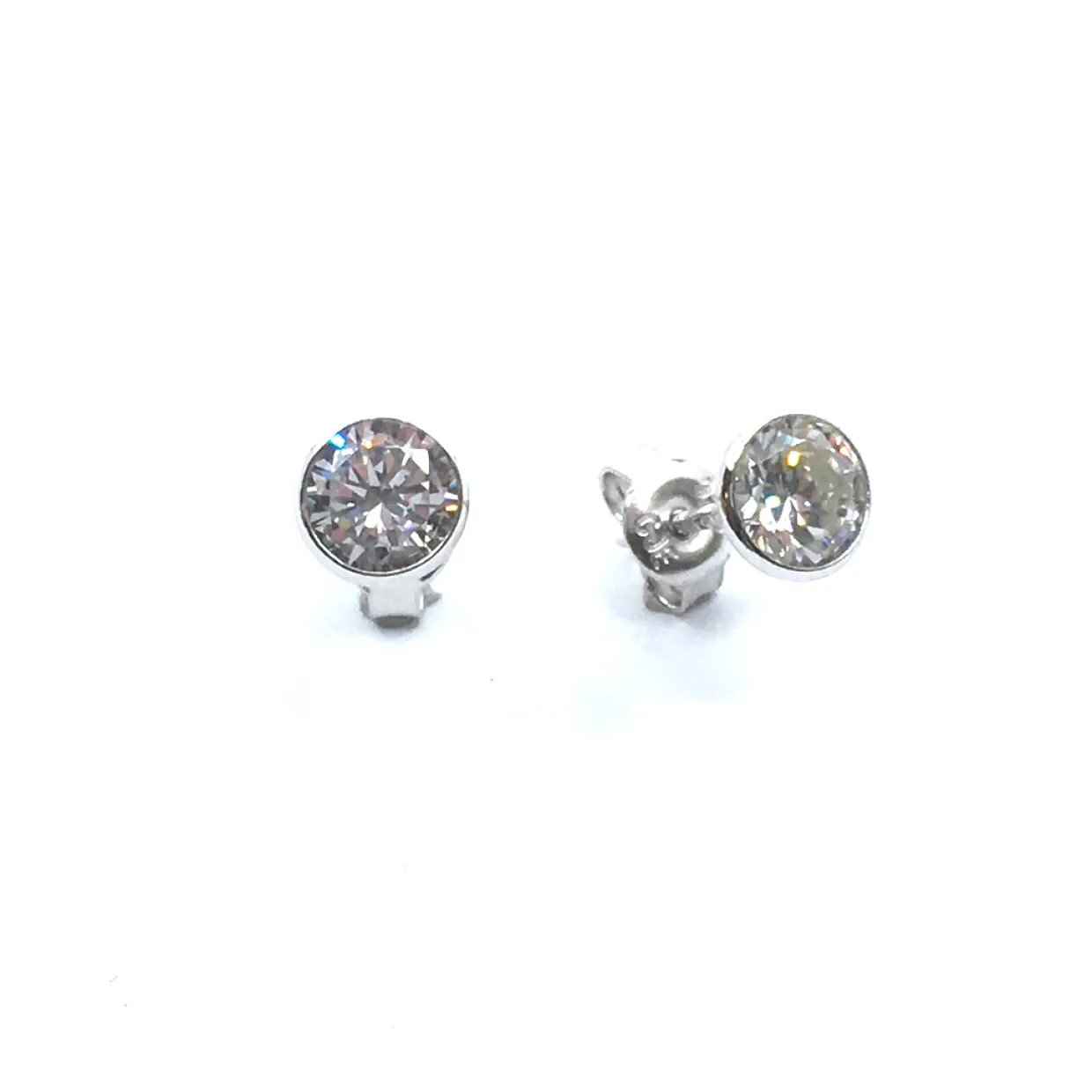 SØLV ØRESTIK RHODINERET MED SYNT. KLAR ZIRKONIA 7 MM RØR FATNING