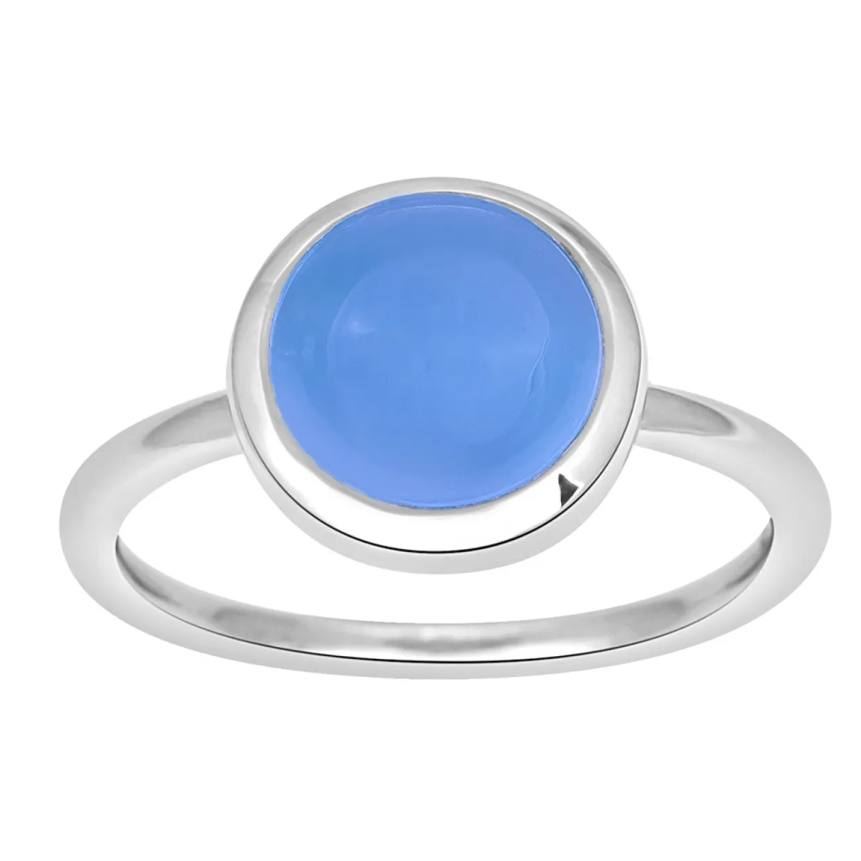 SØLV RHODENERET RING MED BLÅ KALCEDON 9 MM