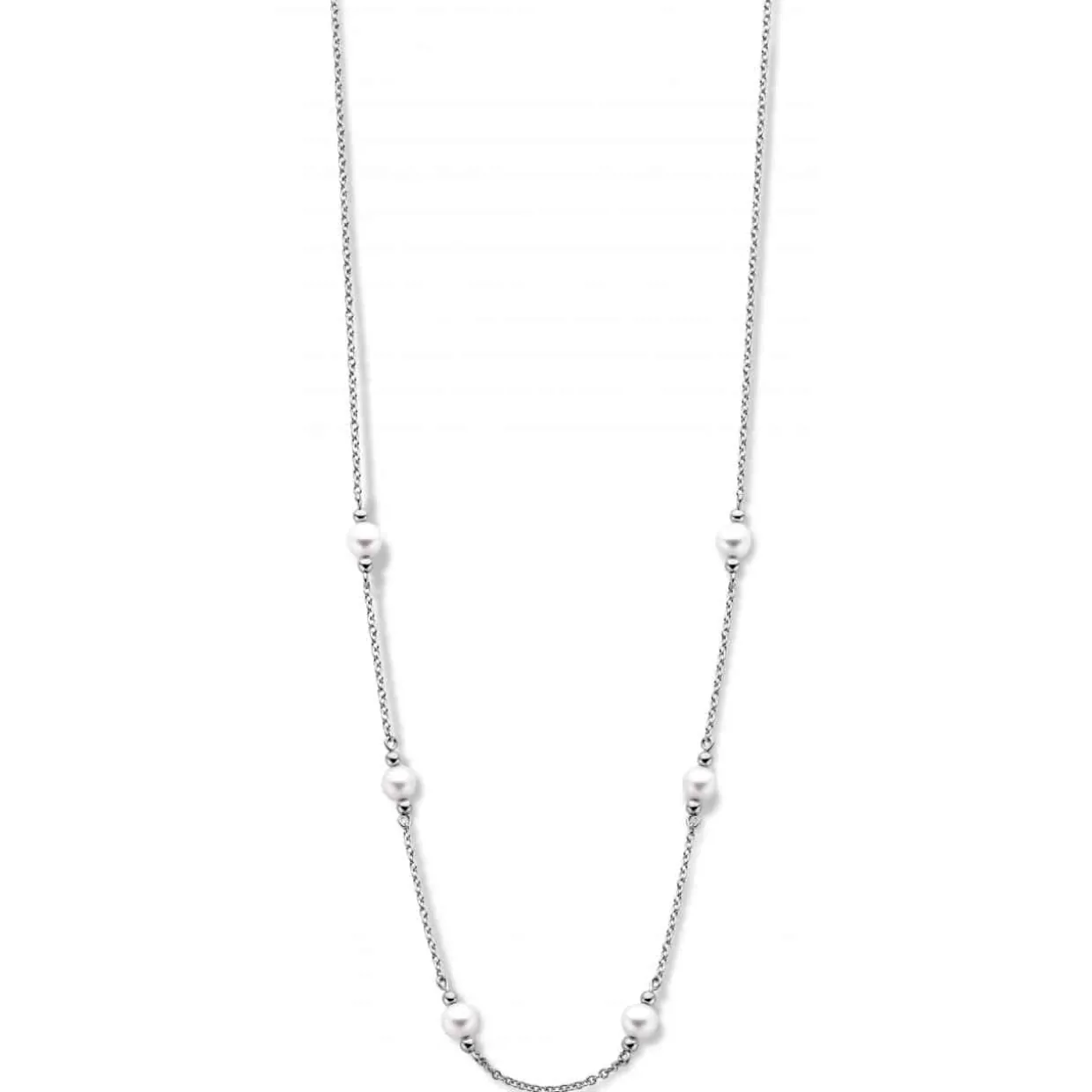 Halskæden er udformet af 925 sterling sølv, med hvide ferskvands perler, kæden måler 45 cm.