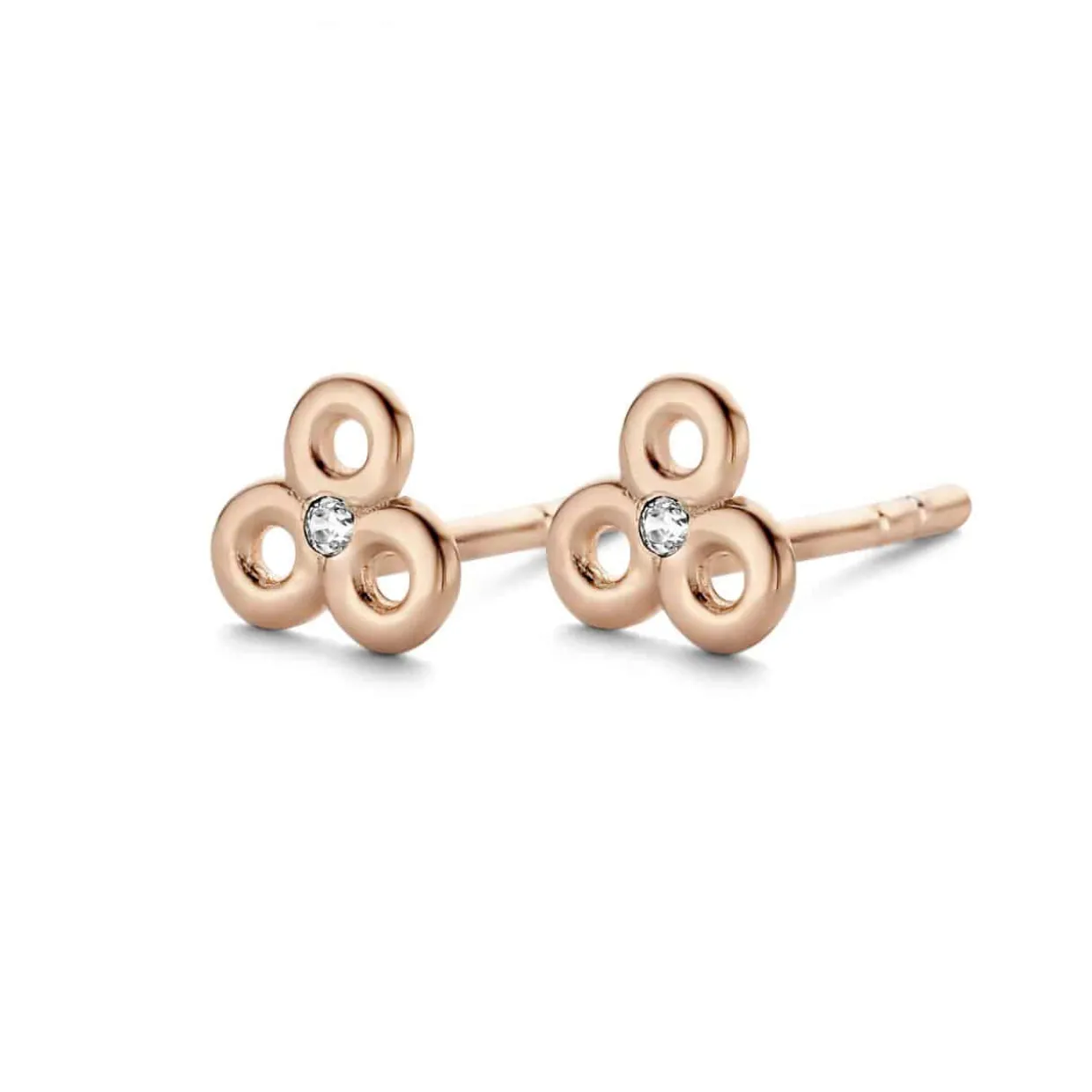 Øreringe udformet i blank poleret rosa forgyldt sterling sølv med en lille zirkon i midten.