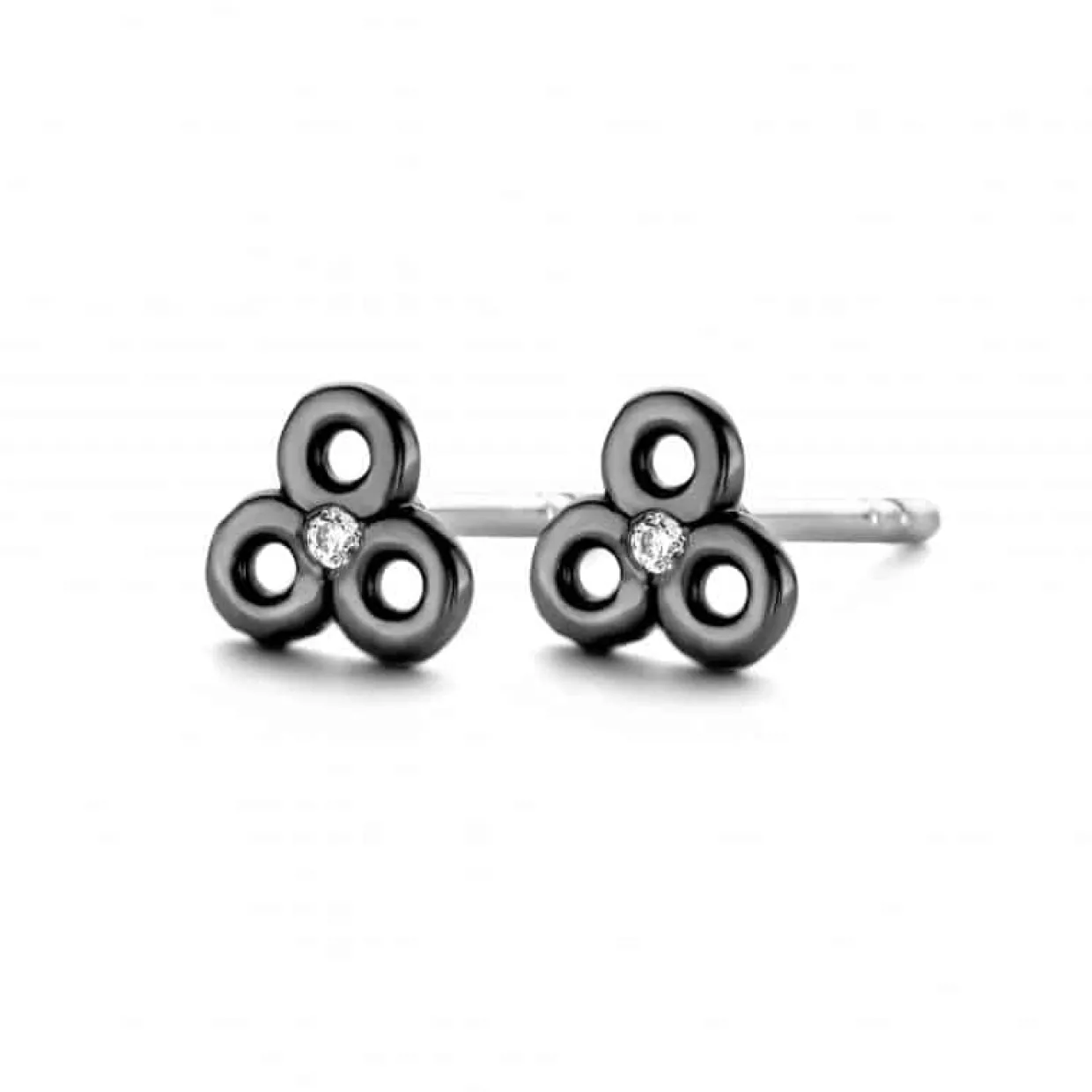 Øreringe udformet i blank poleret sterling sort sølv med en lille zirkon i midten.