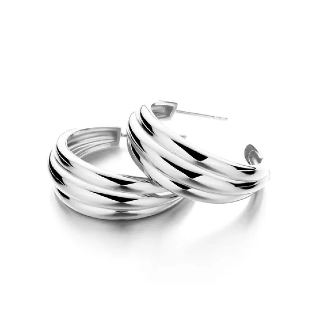 Emelda øreringen er fremstiller 925 sterling sølv med et rillet overflade og udformet som en halv creol med lås.