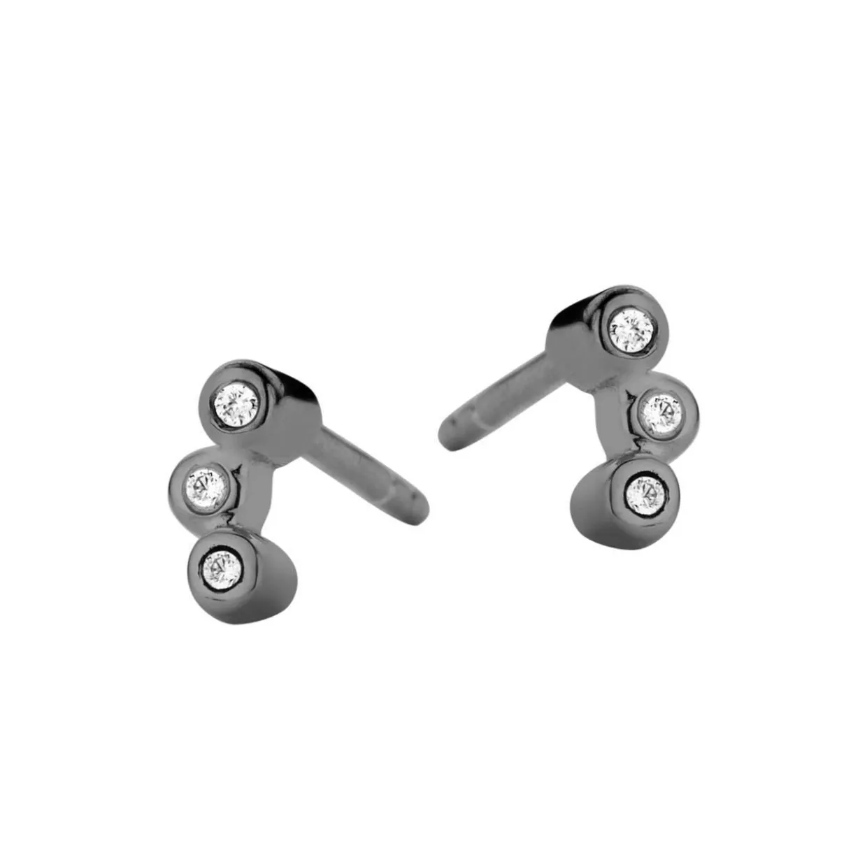 Flot og enkelt ørering, med et flot blankt finish. Øreringen har 3 små hvide syntetiske zirkoniaer, som giver øreringen et ekstra feminint strejf. Øreringen er lavet ud af sort ruthineret sølv, hvilket giver øreringen sit helt unikke udseende, i modsætning til oxyderede smykker.