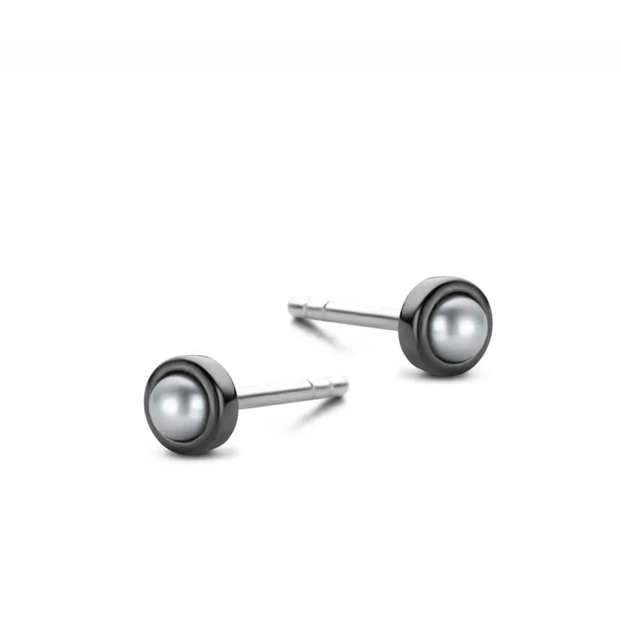 Ørestik i sort ruthineret 925 sterling sølv, med en ferskvandsperle, som giver et klassisk design.