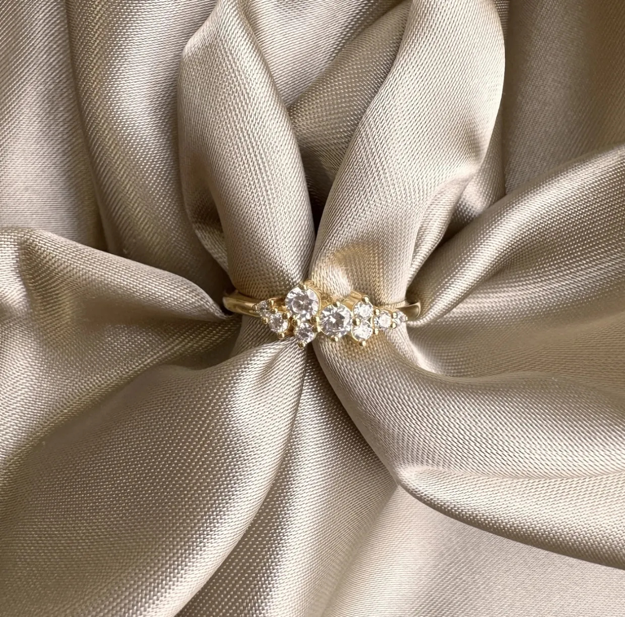 Aria ringen er fremstillet i 18 karats forgyldt sterling sølv og med 9 zirkoner.
