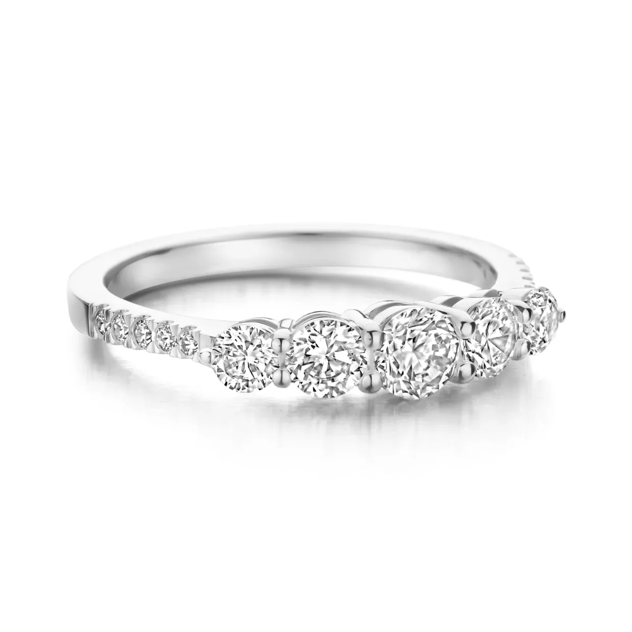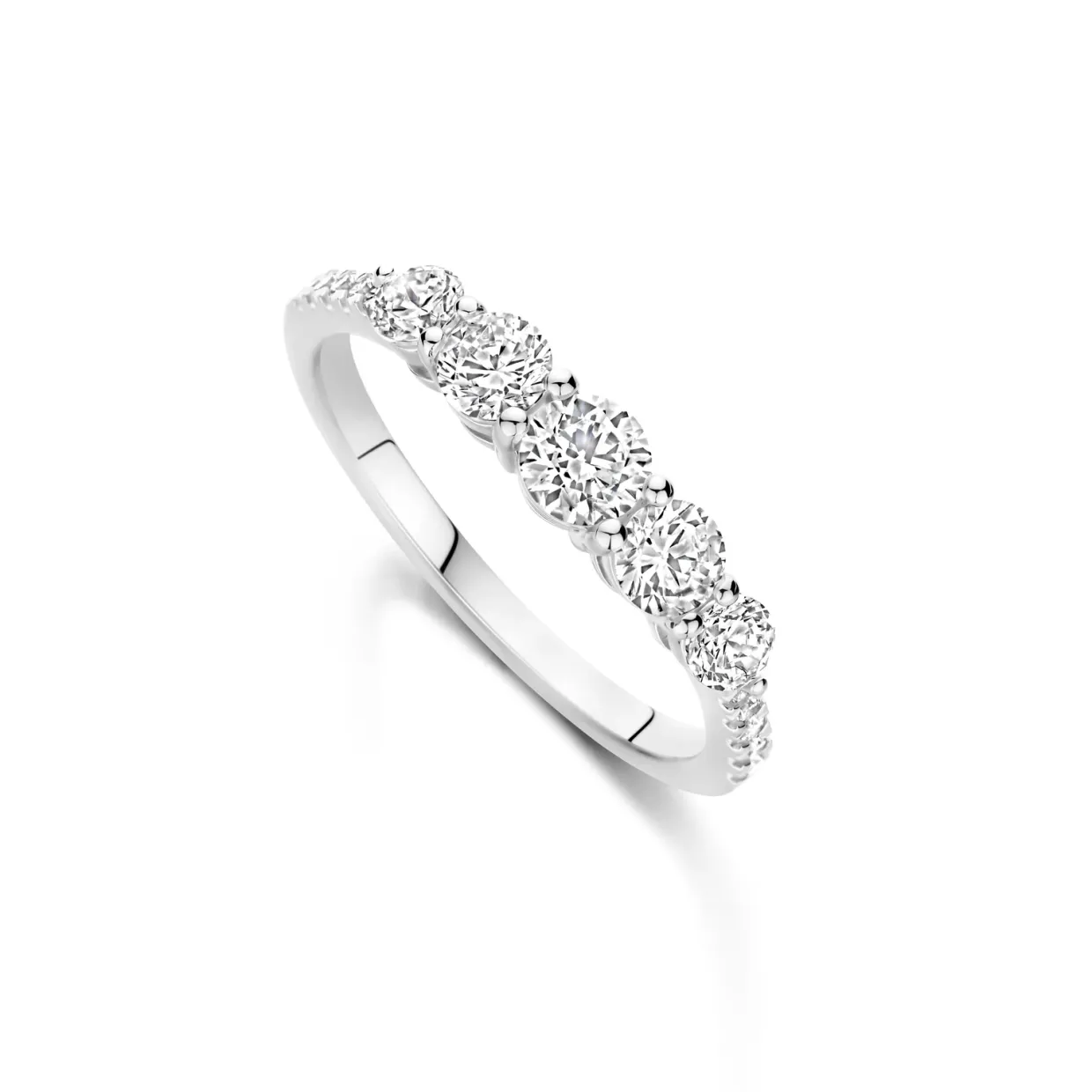 Ringen er prydet med smukke zirkoniasten, som fortsætter i mindre format ned af ringskinne.