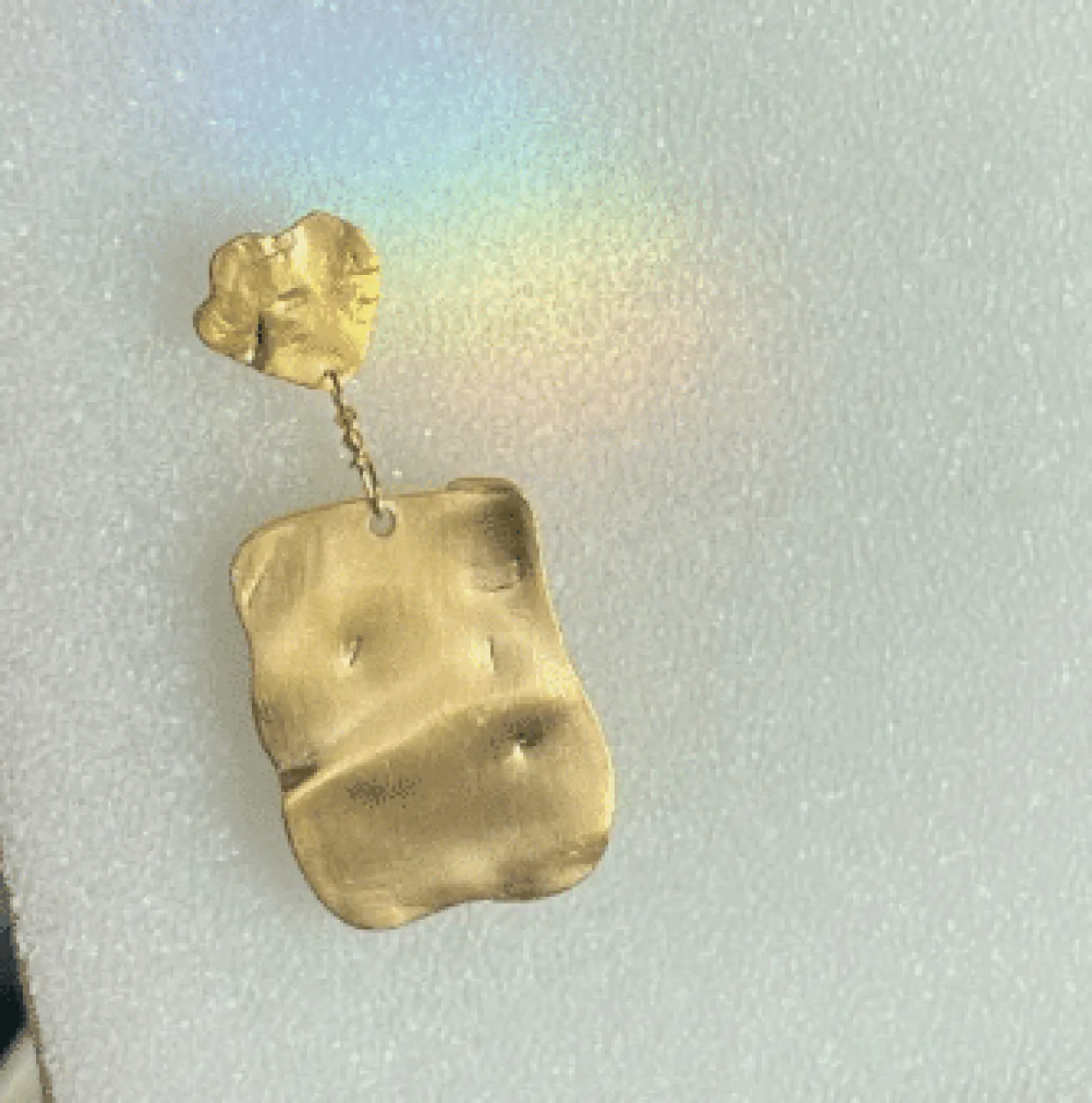 I øreringen hænger en bred plade med en banket overflade.