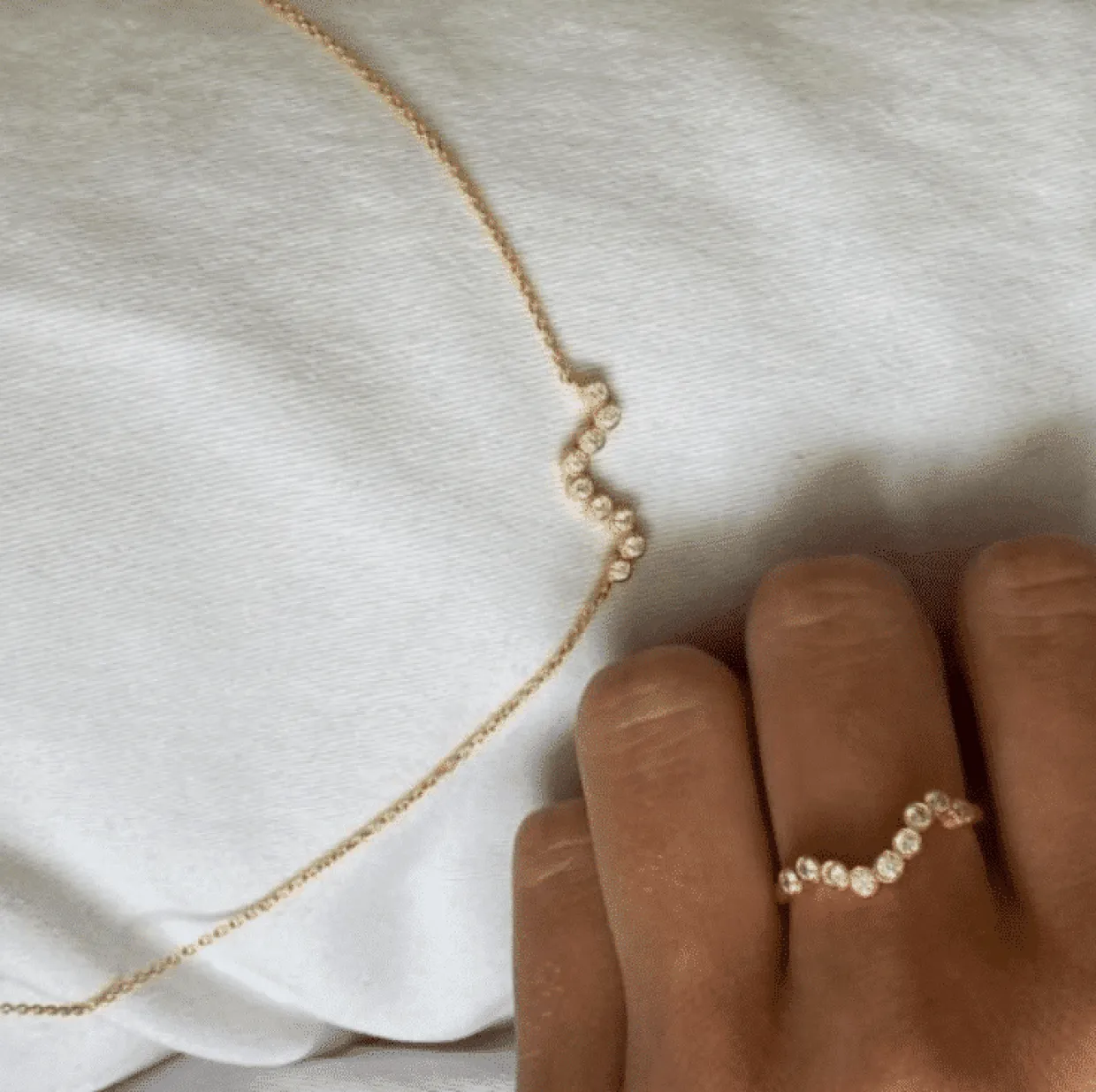 I ringen sidder ni flotte hvide syntetisk zirkonia i en fin bue.