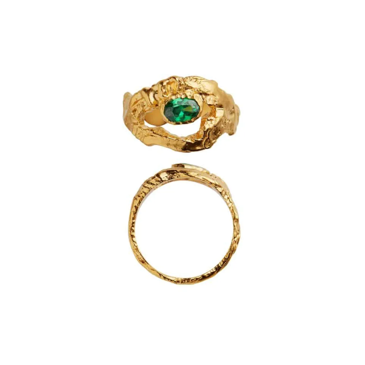 I ringen sidder en grøn syntetisk zirkonia, som giver det rå udtryk en feminin tilføjelse.
