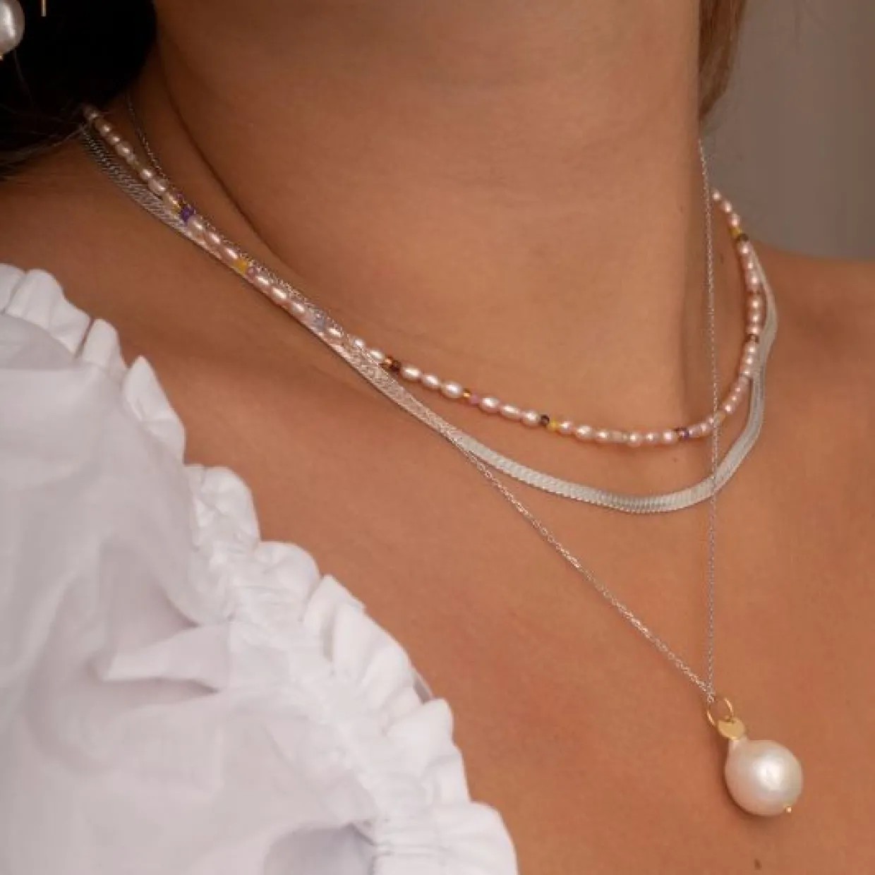 Flot slange halskæde som ligger smukt på halsen. Flot alene, men også sammen med flere halskæder.