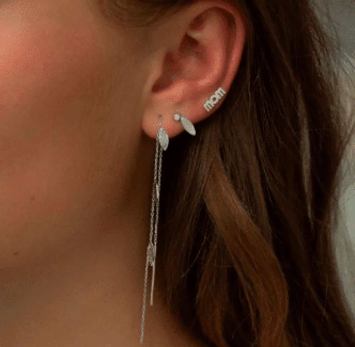 Ørestikken er designet med det moderne ord MOM eller WOW, ørestikken kan vendes som du ønsker.