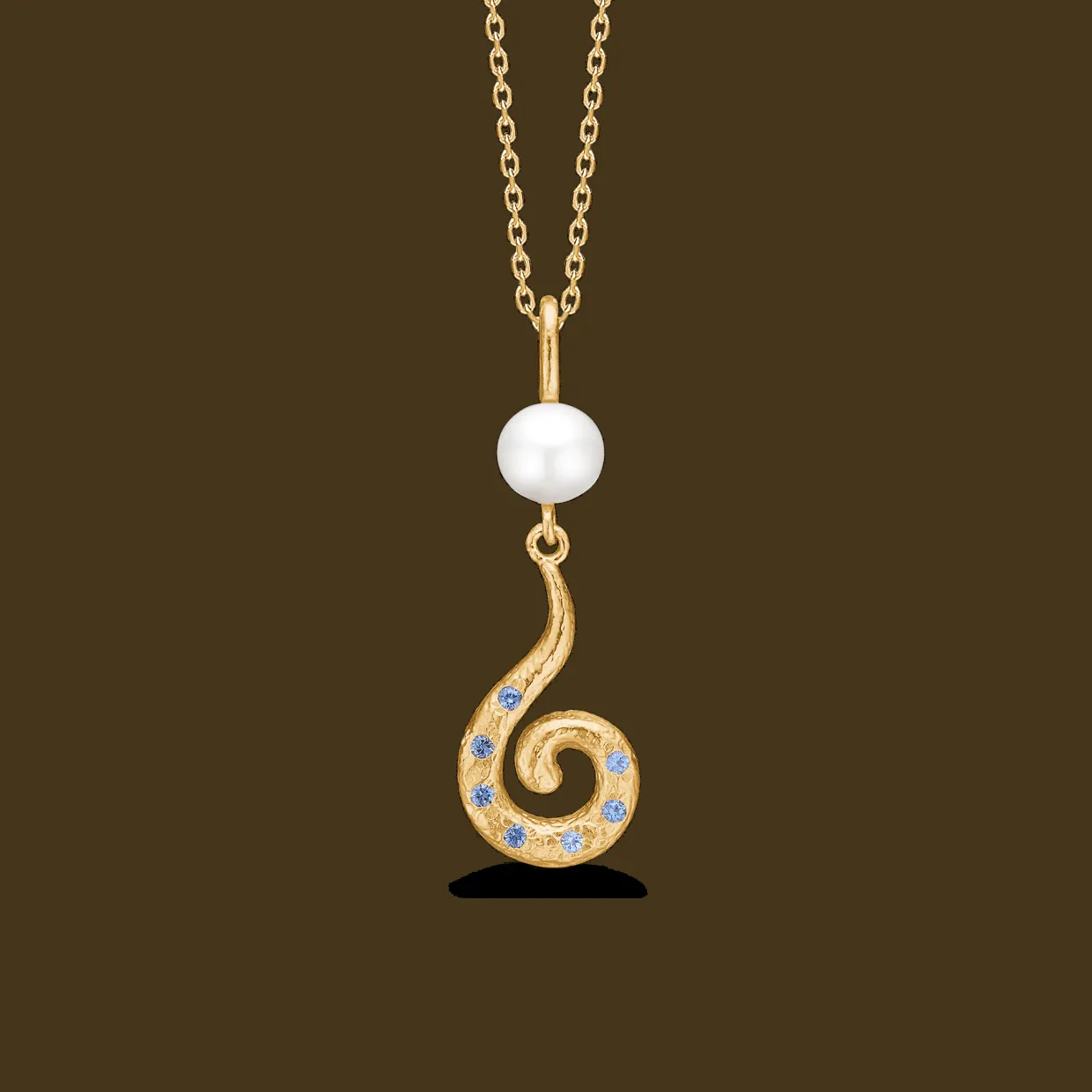 STUDIO Z CURIOSITY HALSKÆDE FORGYLDT SØLV MED HVID PERLE OG BLÅ STEN – 7227871
