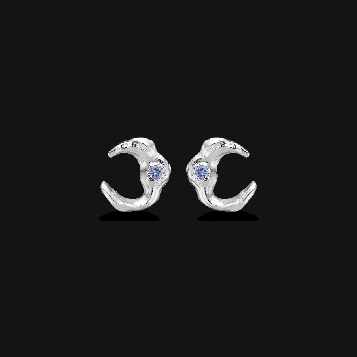 I de måneformede ørestikker sidder en blå zirkonia.