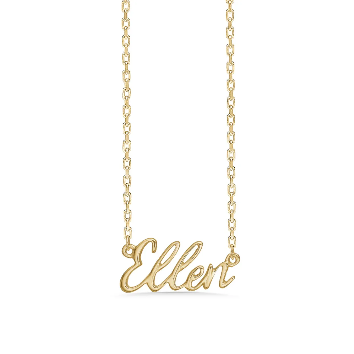 Halskæden kan bestilles med op til 8 bogstaver for 495 kr. Ved navne uden for fast sortiment tillægges 100 kr.