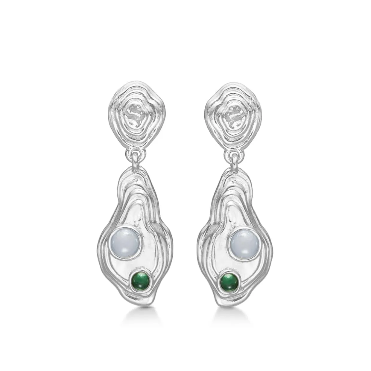 Super flotte øreringe lavet i 925 sterling sølv og grøn zirkonia sten. Øreringene har en helt unik overflade lavet med inspiration fra naturen, perfekt tilbehør til et hverdags- eller fest look.
