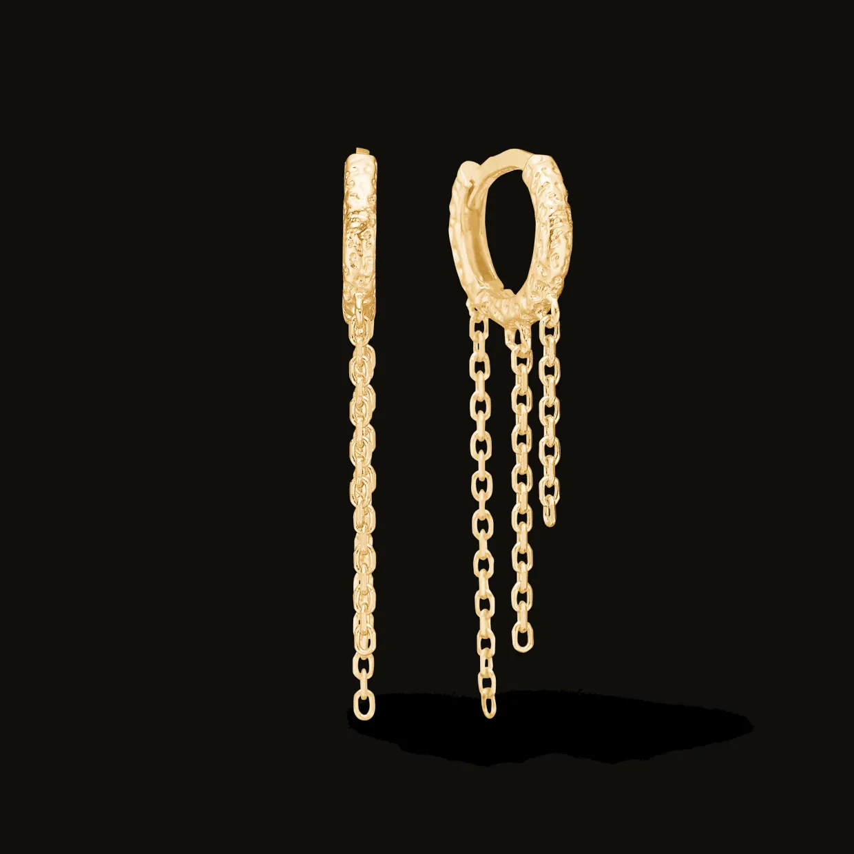 Fede små sølv forgyldte creoler med kæder på siden som giver en fedt look på øret.
