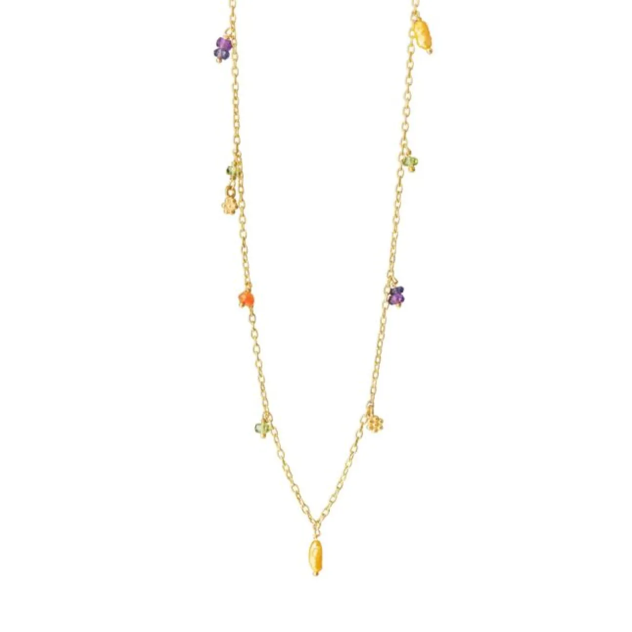 Flot sølv forgyldt halskæde med mix af farvet sten, kæden giver et flot look på halsen og kan bæres alene eller sammensættes med flere