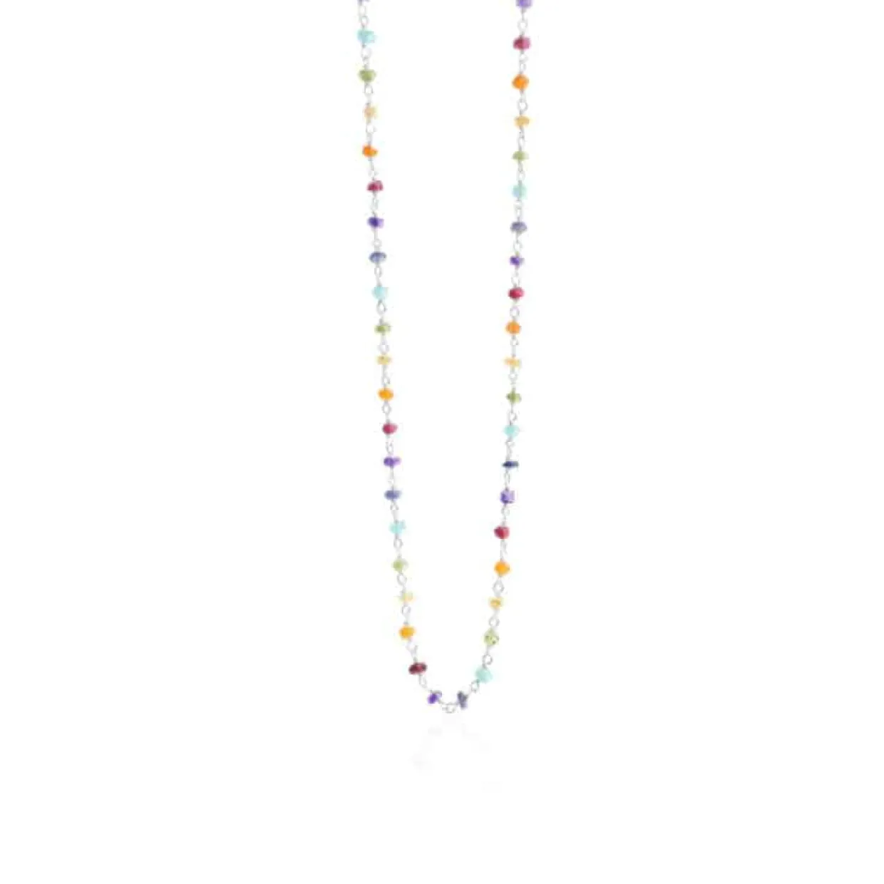 Sølv halskæde med ægte sten. Halskæde 40-45 cm, sølv, knyttet 3-4 mm facetgranat, karneol, citrin, peridot, apatit, iolit, ametyst. Det er en halskæde der virkelig er farverig.