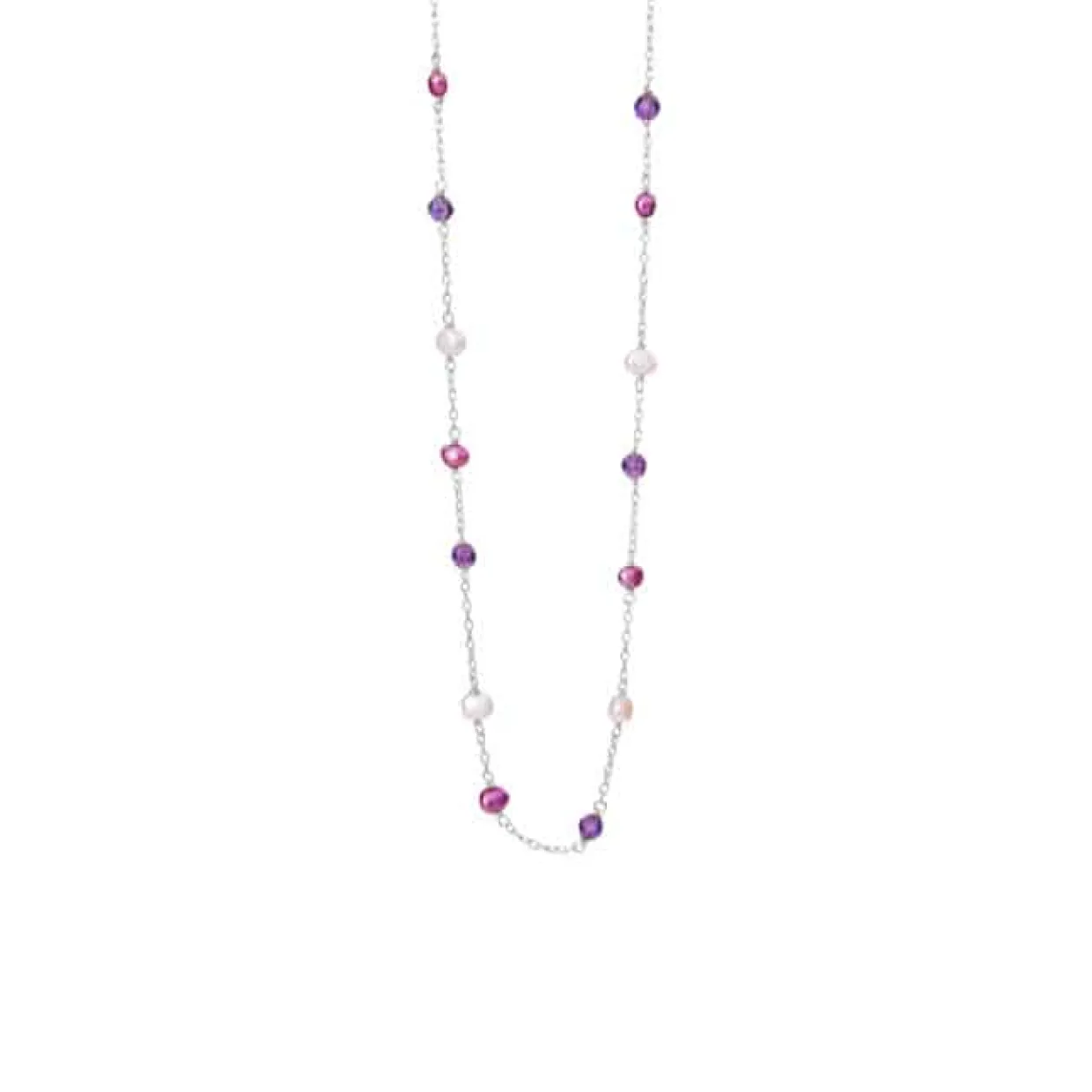 Smuk og meget elegant sølv halskæde med hvid perle, pink perle, lilla perle og amethyst.