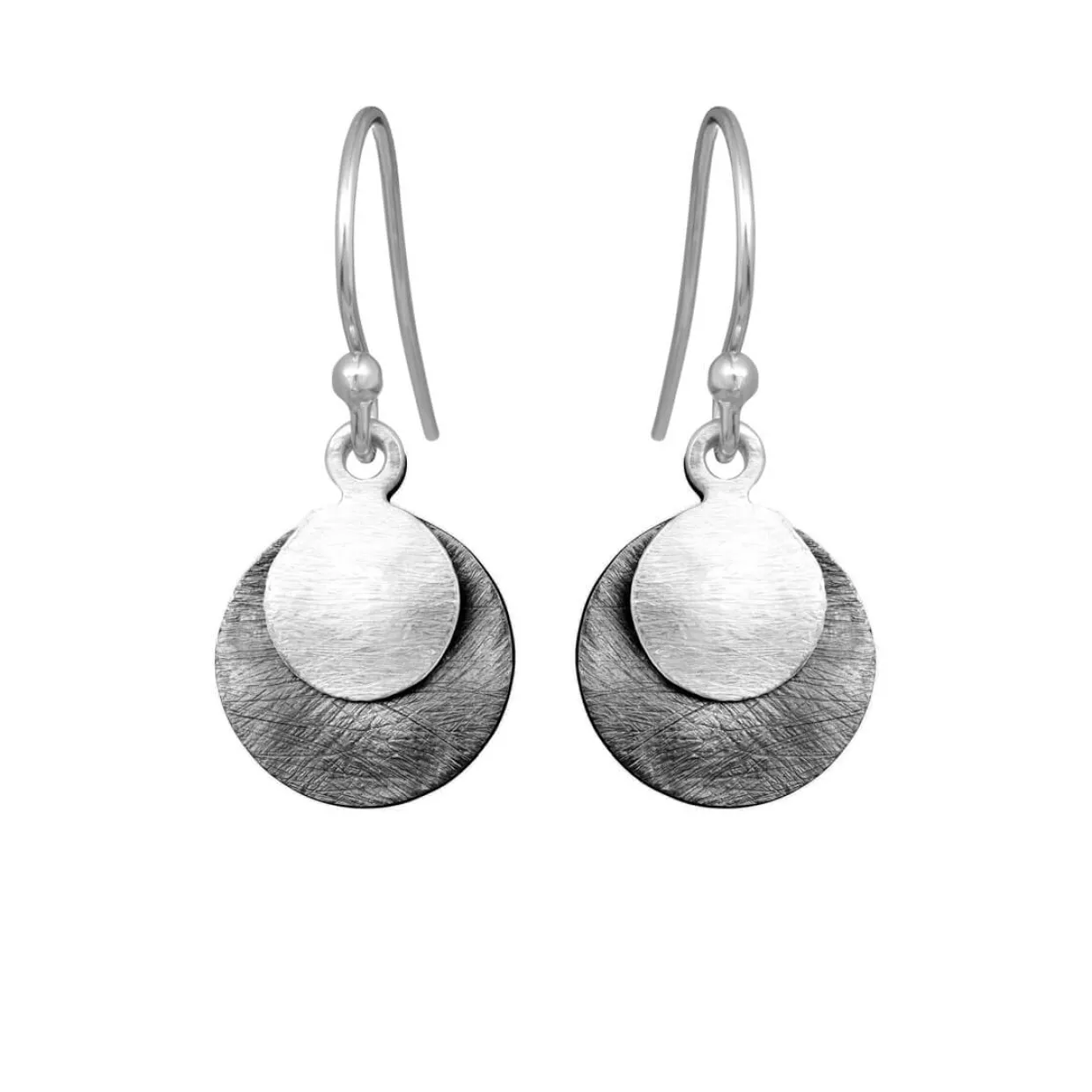 Unikke øreringe fra Susanne Friis Bjørner i sølv. Øreringene har et flot og enestående design med to mønter i forskellige størrelser. Udseendet på øreringene skiller sig ud og passer ind i enhver smykkesamling.