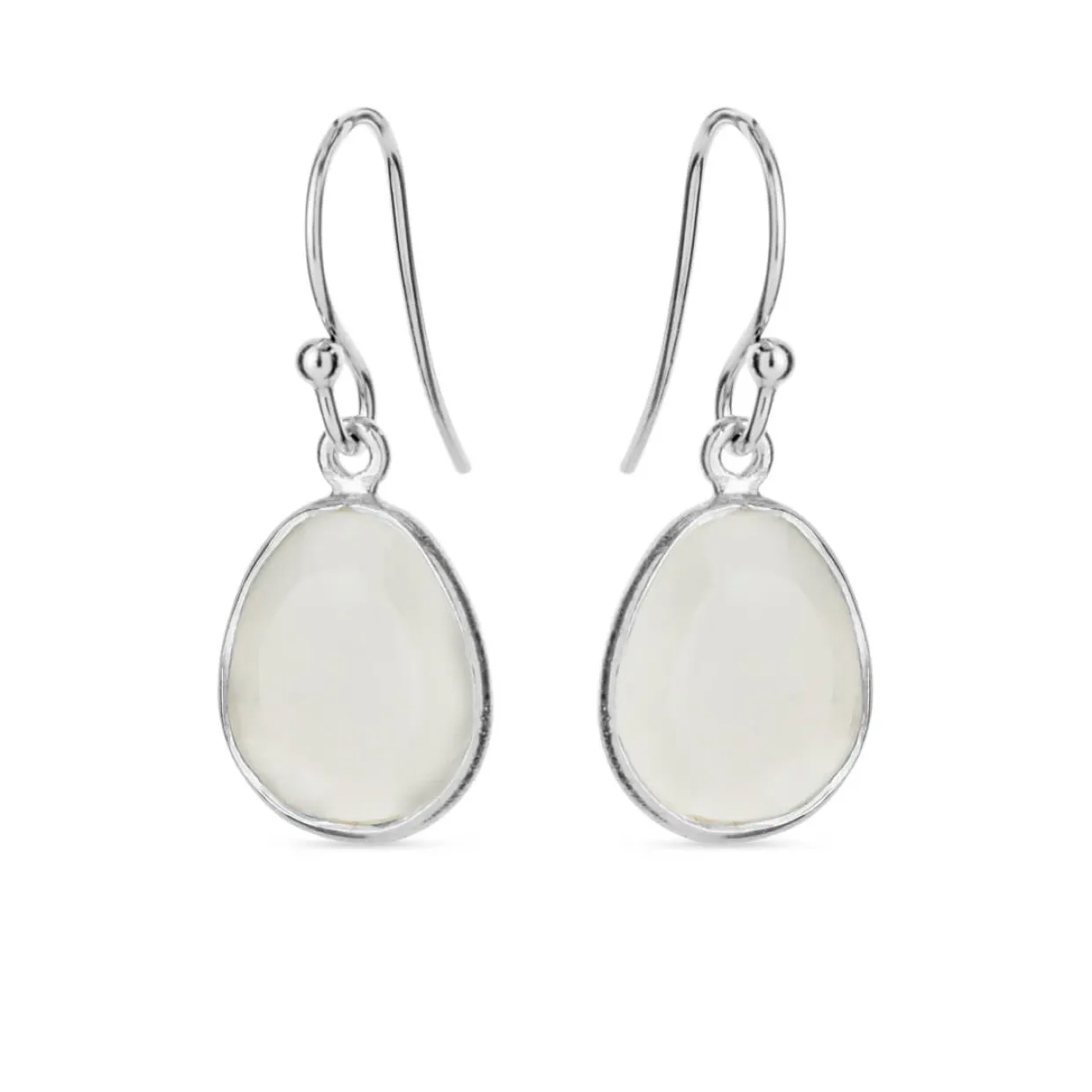 Enkle ørehængere i sølv med facetslebne hvide månesten. Øreringene er super fine til hverdag, men kan også sagtens bruges til fest.