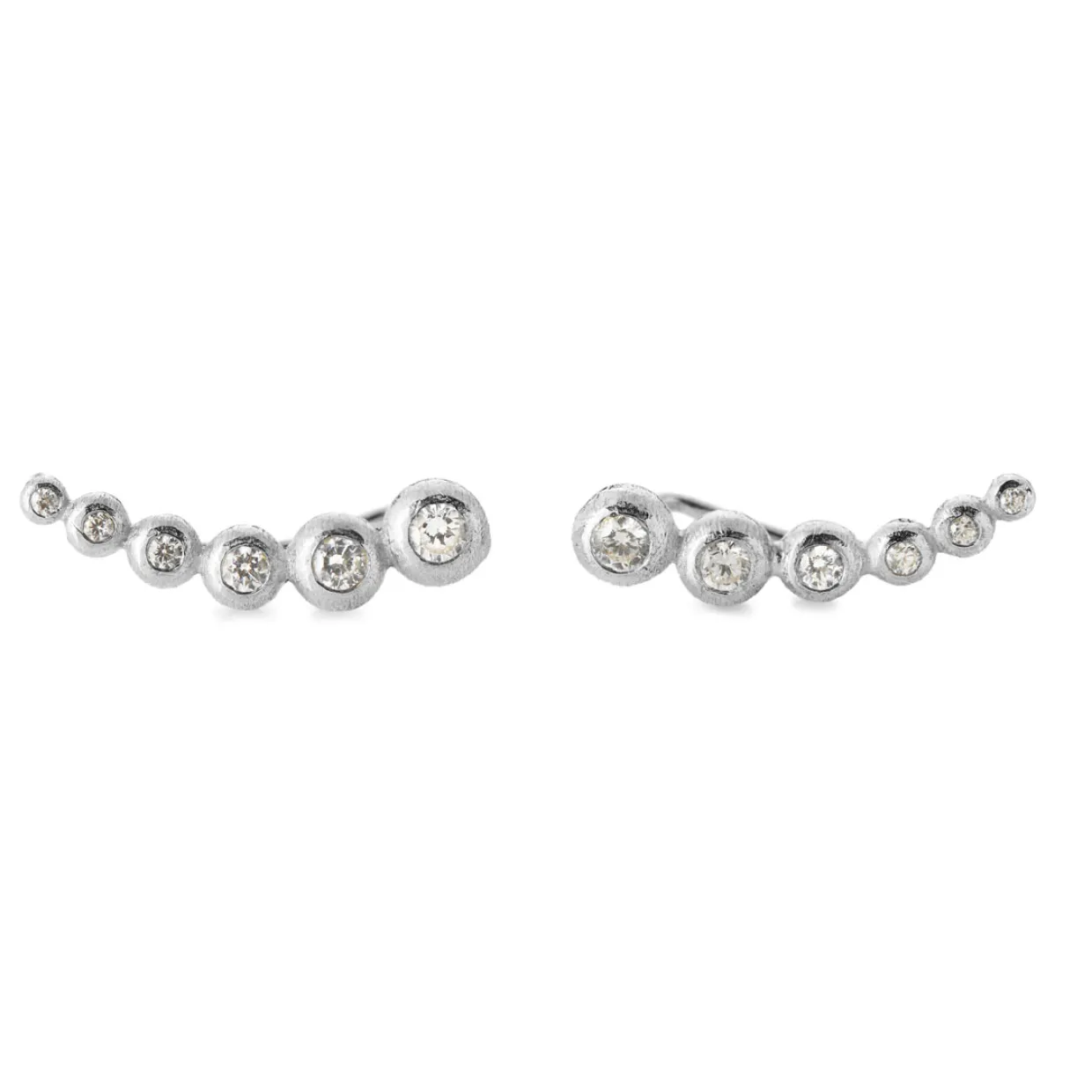 Øreringene er fremstillet i lyst sterlingsølv med hvide syntetiske zirkonia. De fås også i forgyldt sterlingsølv.