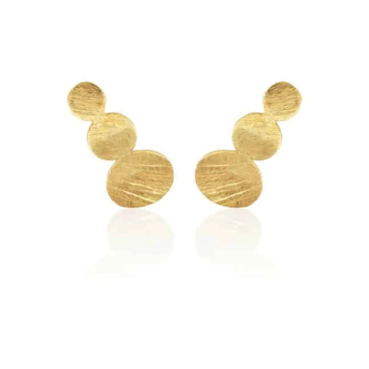Tre fine små runde plader der ligger i forløb af hinanden og er trinvis stigende i størrelse. Ørestikkens plader er mellem 4-7mm. Øreringene har en mat overflade for at give øreringene struktur.