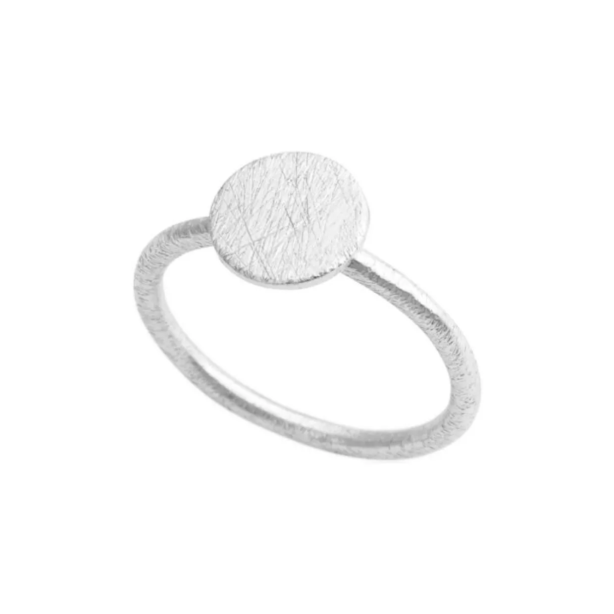 Susanne Friis Bjørner ring 925 Sterling sølv, ringen har en mat overlade og på toppen er der en cirkel der også er mat måler 8 mm. Ringen findes også i forgyldt sølv.